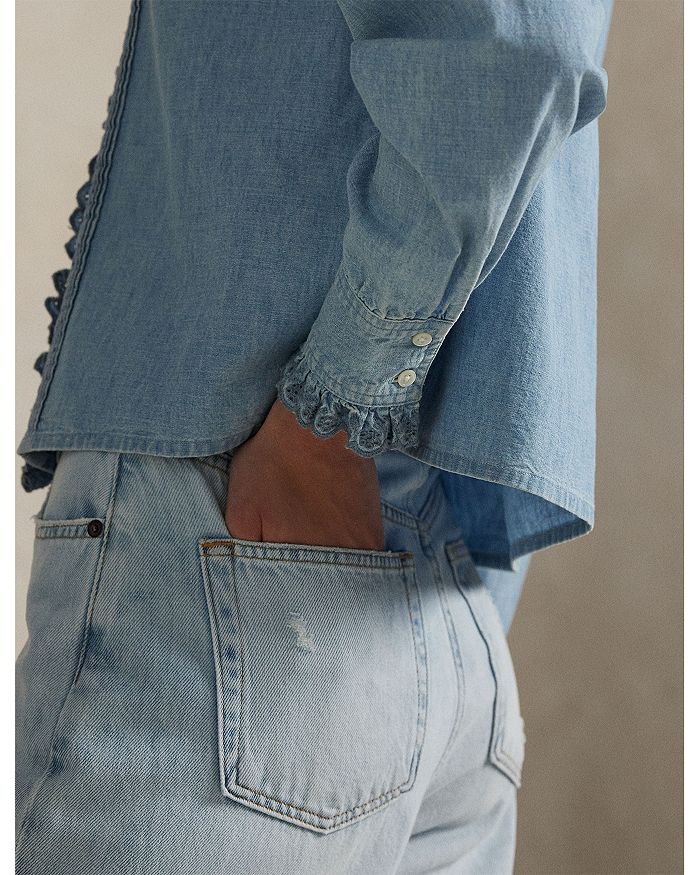 Топ из шамбре с рюшами Ralph Lauren, синий