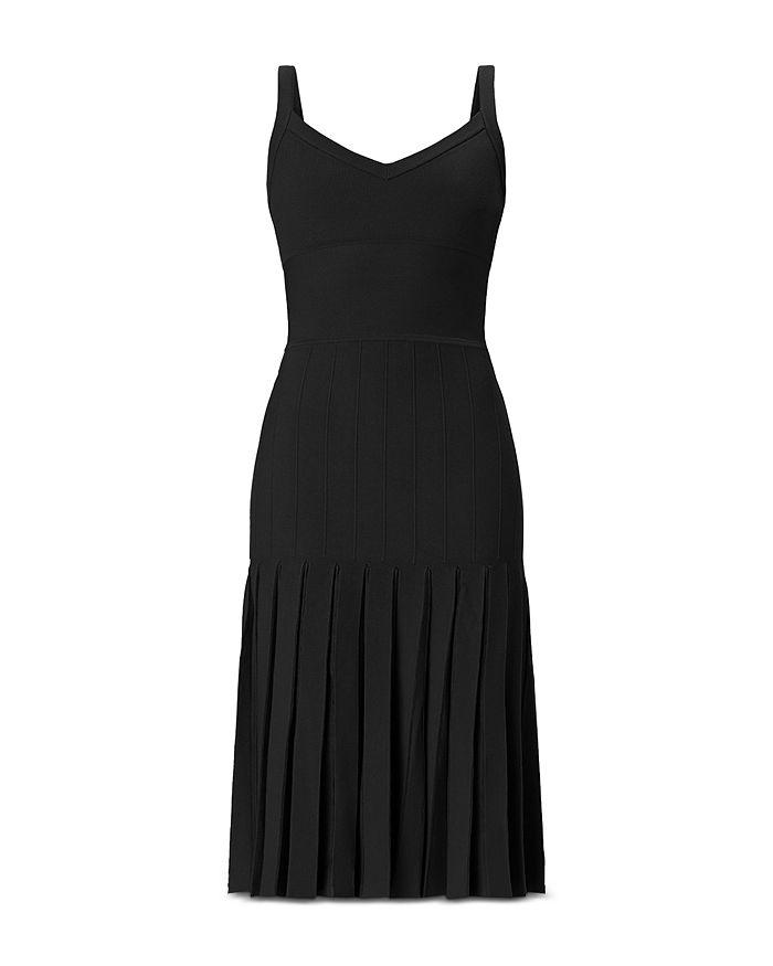 Платье Rosa от Hervé Léger — это облегающее и расклешенное платье миди из трикотажа средней толщины в рубчик. Оно имеет V-образный вырез и плиссированную отделку с прозрачными акцентами.