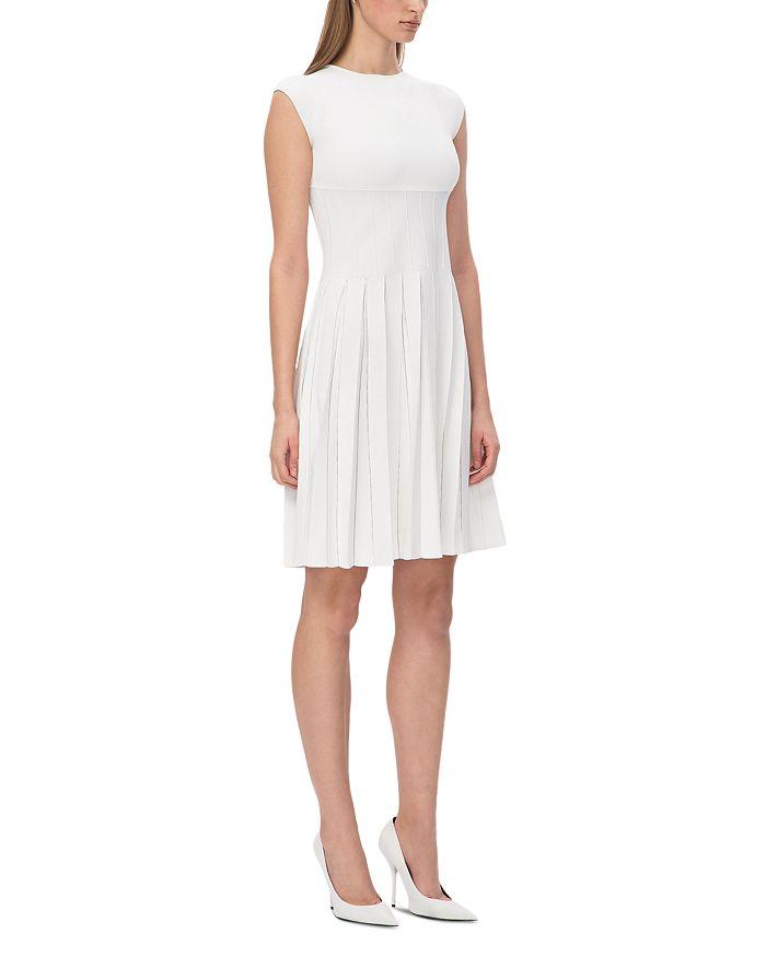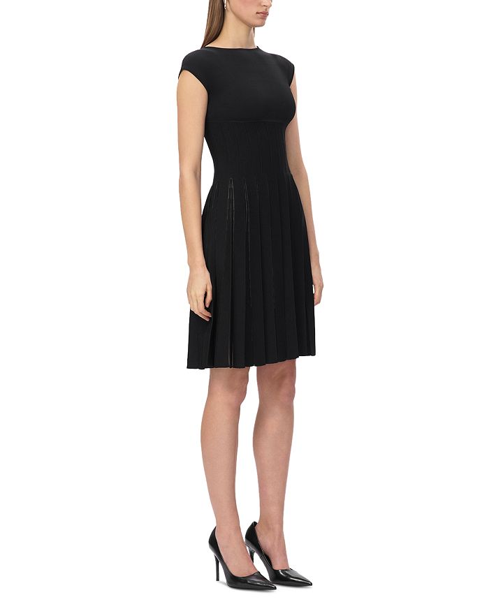Платье Annabel от Hervé Léger предлагает непринужденный облегающий силуэт с расклешенной юбкой. Изготовленное из легкого трикотажа и подбитое сетчатой тканью телесного цвета, это платье длиной до колена имеет вырез-лодочку, рукава-крылышки и плиссированные детали.