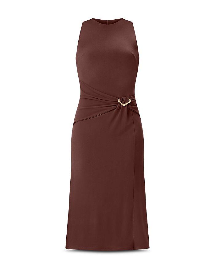 Неподвластный времени стиль определяет облегающий силуэт платья Brooke от Hervé Léger. Это миди сшито из легкого джерси на подкладке для непринужденного ношения и имеет драпированную заниженную талию, круглый вырез и молнию по центру спины.