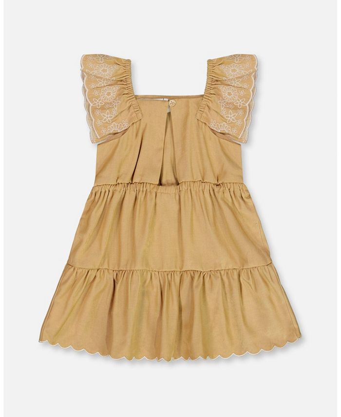 Платье из денима с вышивкой для девочек - Little Kid Deux par Deux, коричневый/бежевый