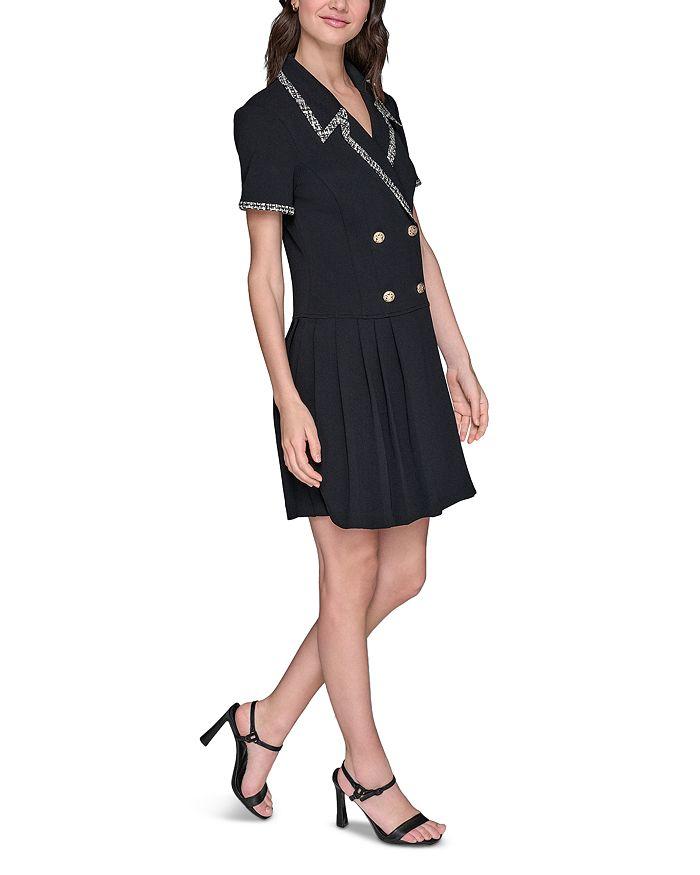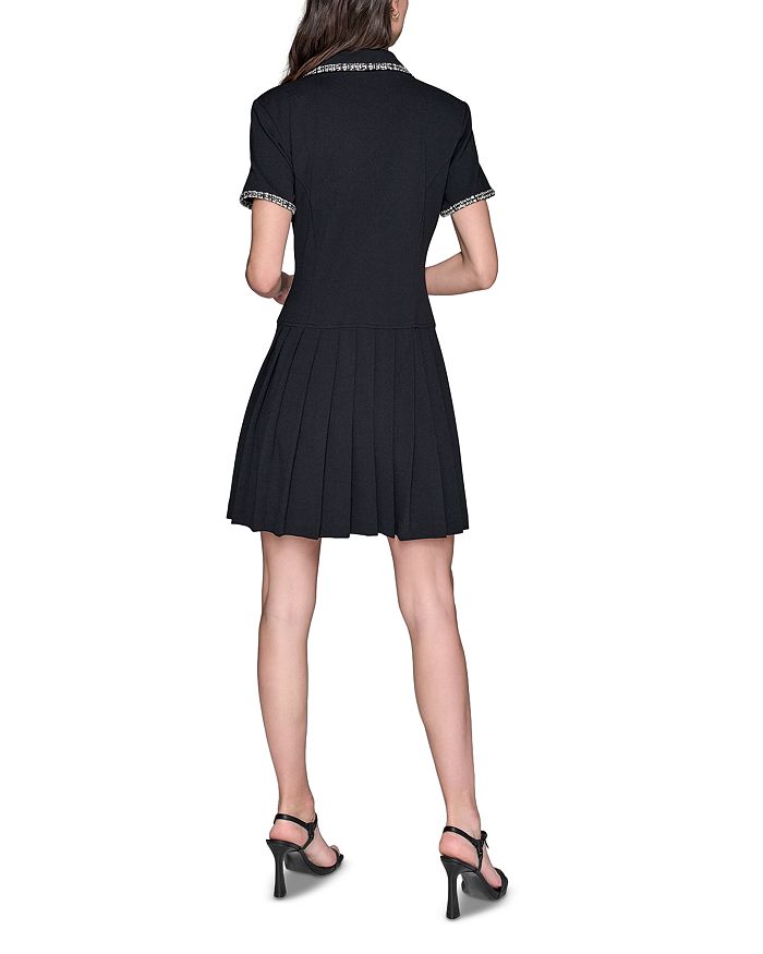 Плиссированная юбка, креповая ткань скуба, контрастная отделка на воротнике и манжетах