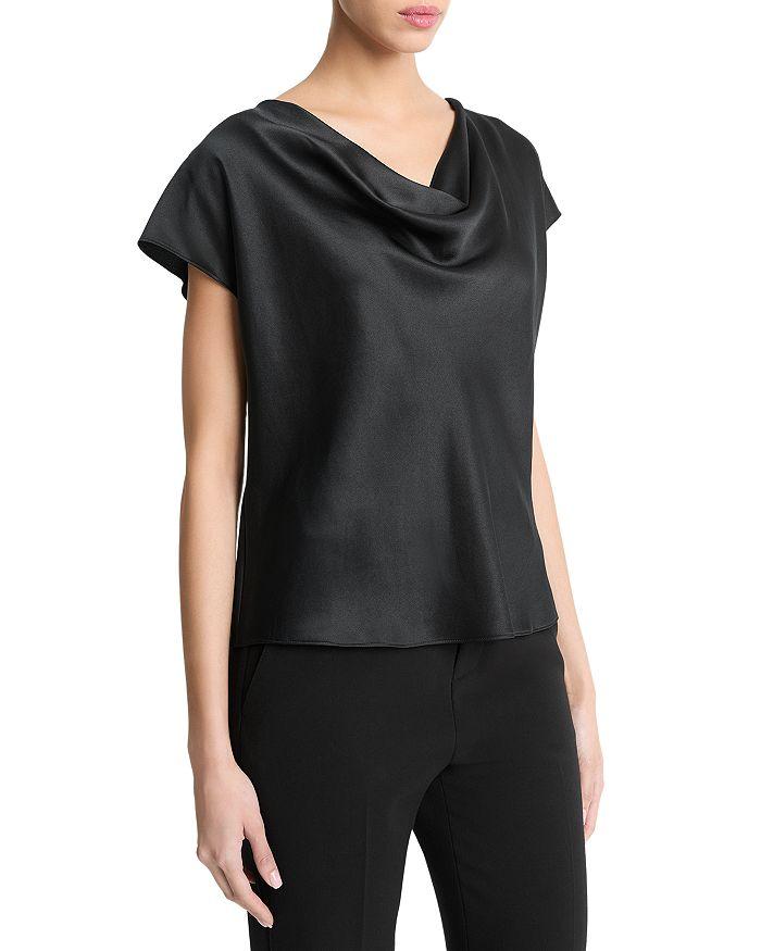 Шелковая блуза с драпировкой на шее Vince, черный