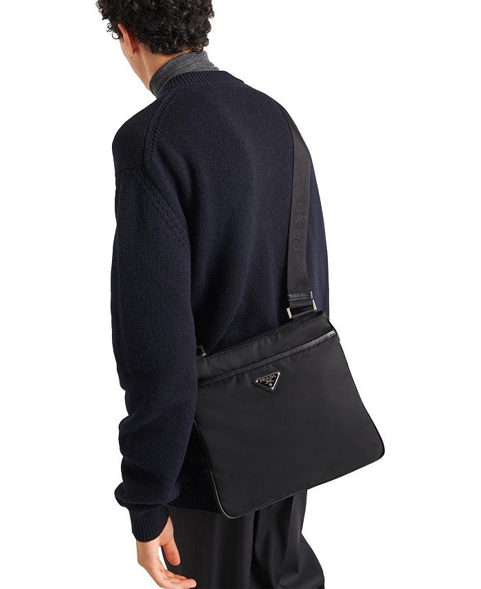Плечевая сумка из Re-Nylon и сафьяно. Prada, черный
