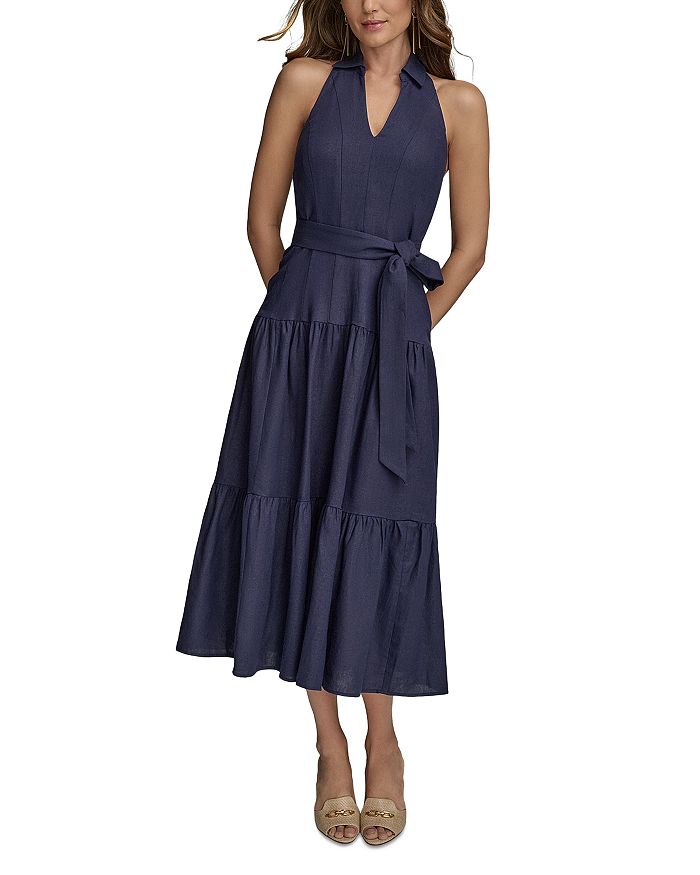 Льняное платье-трапеция на бретелях Donna Karan, синий