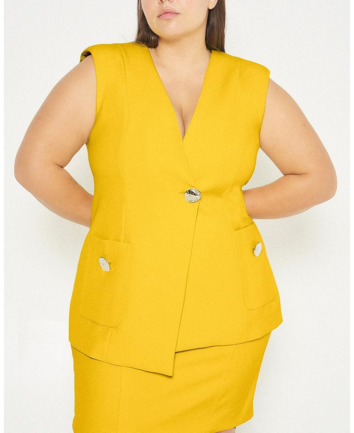 Наш жилет Merci Vest изготовлен из нашего мягкого и эластичного костюмного материала, который обеспечит вам комфорт в течение всего дня. Наш лимонно-желтый цвет подходит всем цветам кожи и поднимет вам настроение, как только вы его наденете. Наши большие серебряные дисковые пуговицы и асимметричный подол добавят еще один уровень изысканности и роскоши. Сочетайте с нашей юбкой Merci для создания полного образа. Этот стиль выглядит непринужденно. Пожалуйста, заказывайте свой обычный размер. Если ваш размер находится между ними, мы рекомендуем уменьшить размер для более приталенного образа или увеличить для дополнительного комфорта. Наша приверженность устойчивому развитию: мы не используем пластик. Упаковка AS by DF изготовлена из 100% переработанных материалов и на 100% биоразлагаема. Посадка Соответствует размеру Свободный крой Скрытый внутренний карман на молнии Асимметричный подол Большие серебряные пуговицы Сильные плечи Модель 5-8 лет, на ней размер S (США)