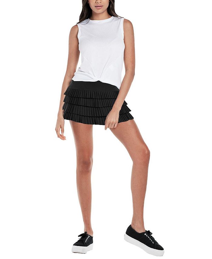 Белая майка с забавной изюминкой! Эта майка с круглым вырезом, полной спиной, сетчатыми вставками и предварительно закрученным узлом спереди со стильными линиями для создания привлекательного укороченного образа.