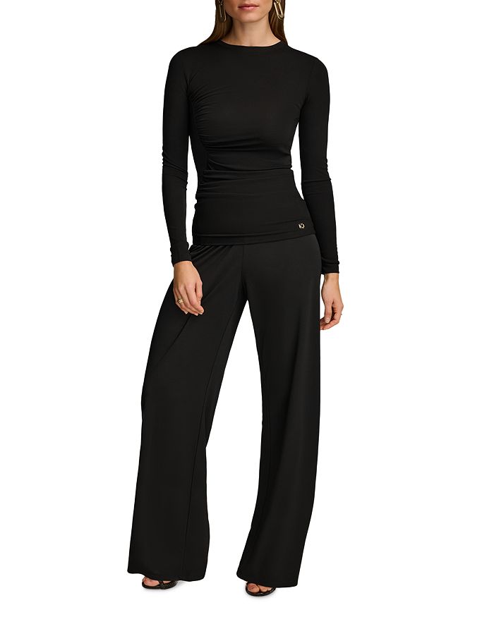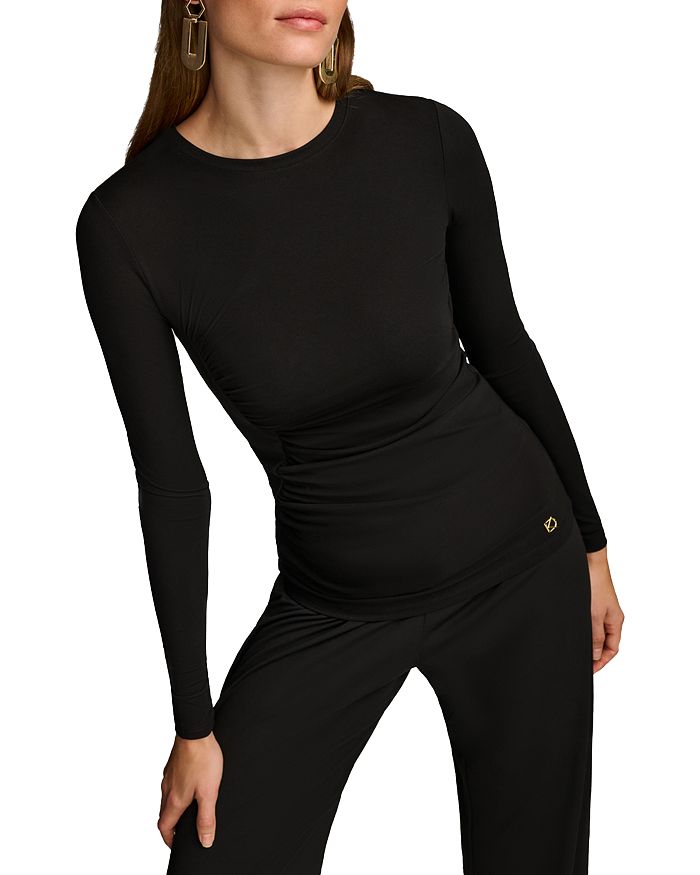 Футболка с длинным рукавом из стрейч-креп Donna Karan, черный