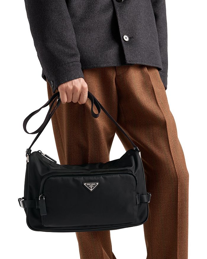 Большая плечевая сумка из Re-Nylon и кожи Saffiano Prada, черный