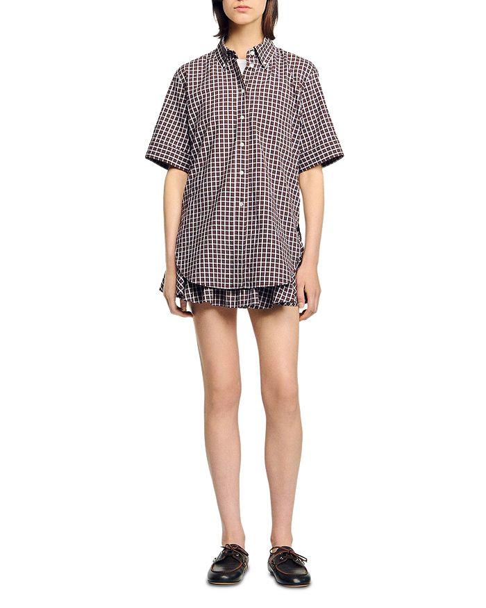 Оверсайз рубашка в клетку Sandro, коричневый