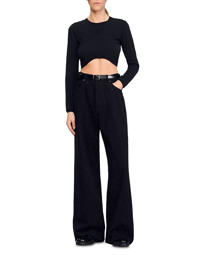 Короткий топ с вышивкой Sandro, черный 9 665₽