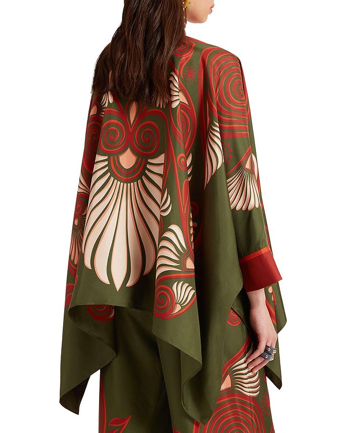 ¿¿Основная вещь JJ круглый год, наша великолепная шелковая рубашка Foulard похожа на ходячее произведение искусства. Частично рубашка, частично пончо, она изготовлена из струящегося итальянского шелка в шикарном водопадном стиле, который подходит для всех форм и размеров. Спускаясь с рук с корейским воротником и пуговицами спереди, она является прекрасным холстом для наших нанесенных вручную принтов, включая этот ультра-шикарный принт. Сочетайте с черными брюками для зала заседаний, расстегивайте поверх купальника для пляжного бара.