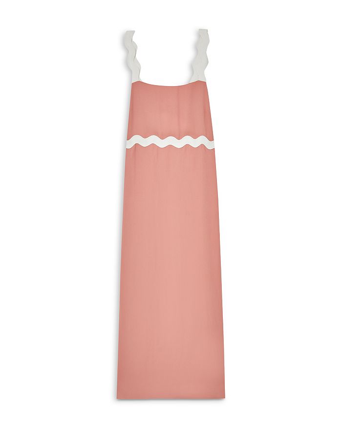 Контрастная крупная отделка зигзагом на бретелях, завышенная талия и сбоку