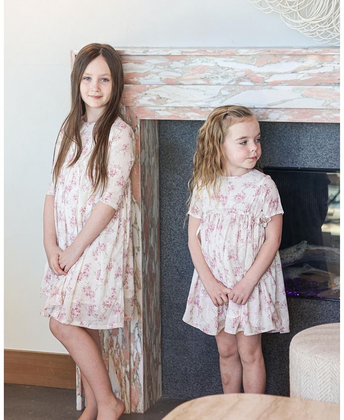 Платье с коротким рукавом и бантом для девочек - Little Kid Maniere, розовый