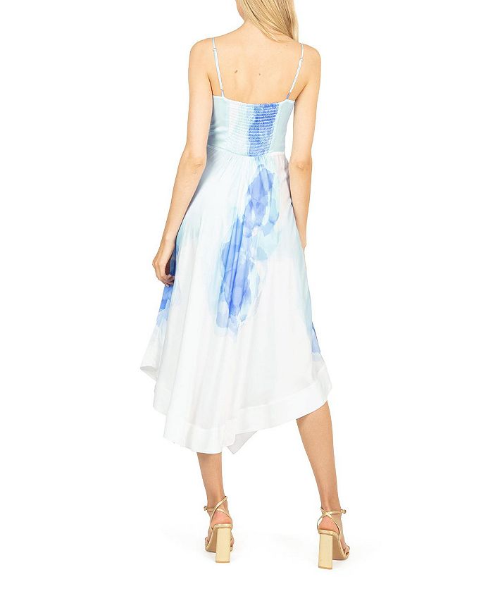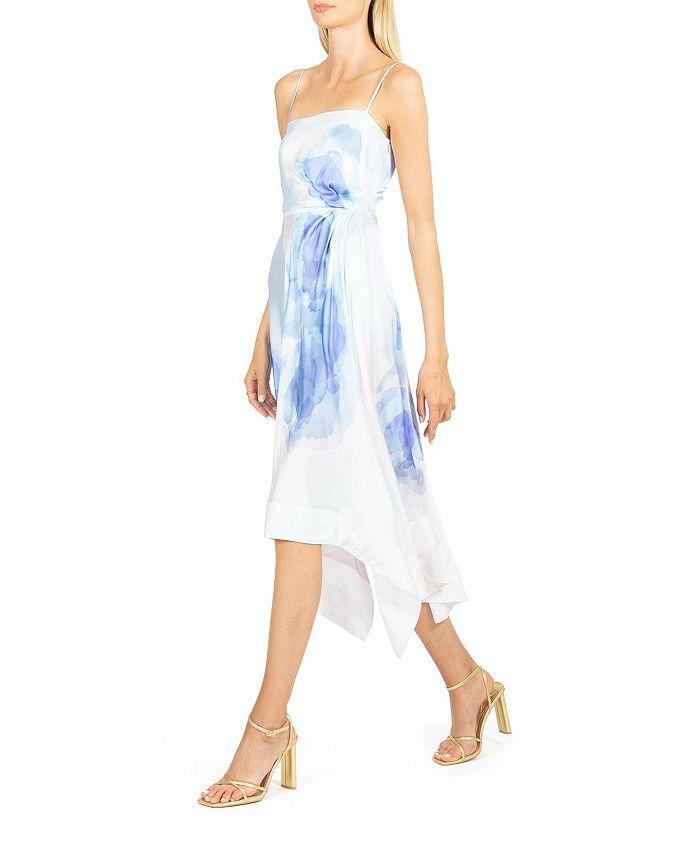 Платье миди с изящно плиссированной юбкой и асимметричным подолом