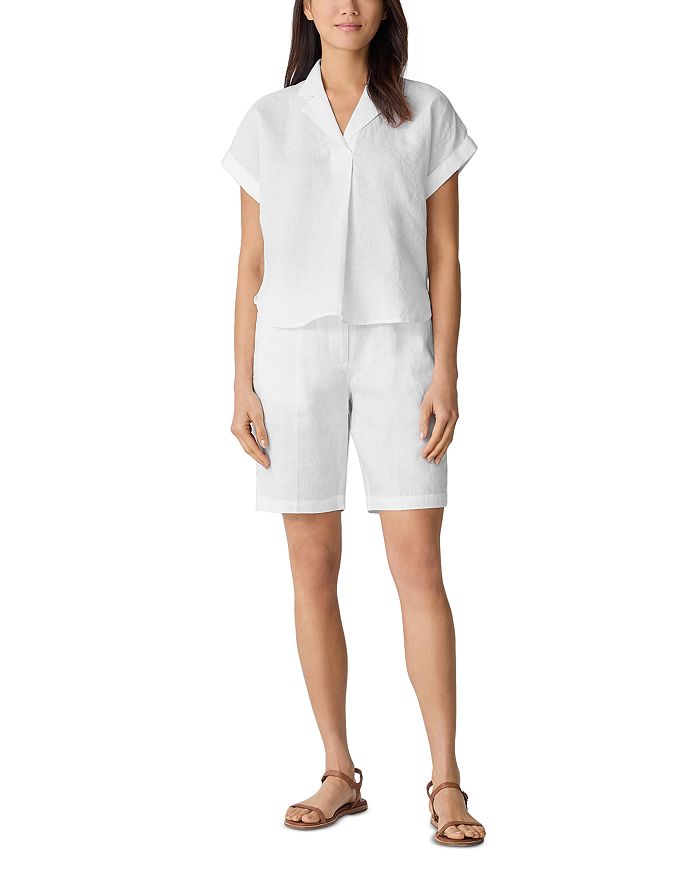 Льняной топ с вырезом лацканом Eileen Fisher, белый