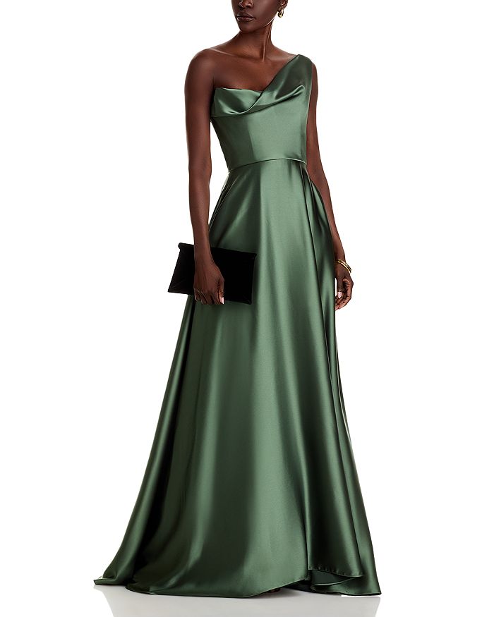 Платье с драпировкой спереди и одним плечом Amsale, зеленый 71 925₽