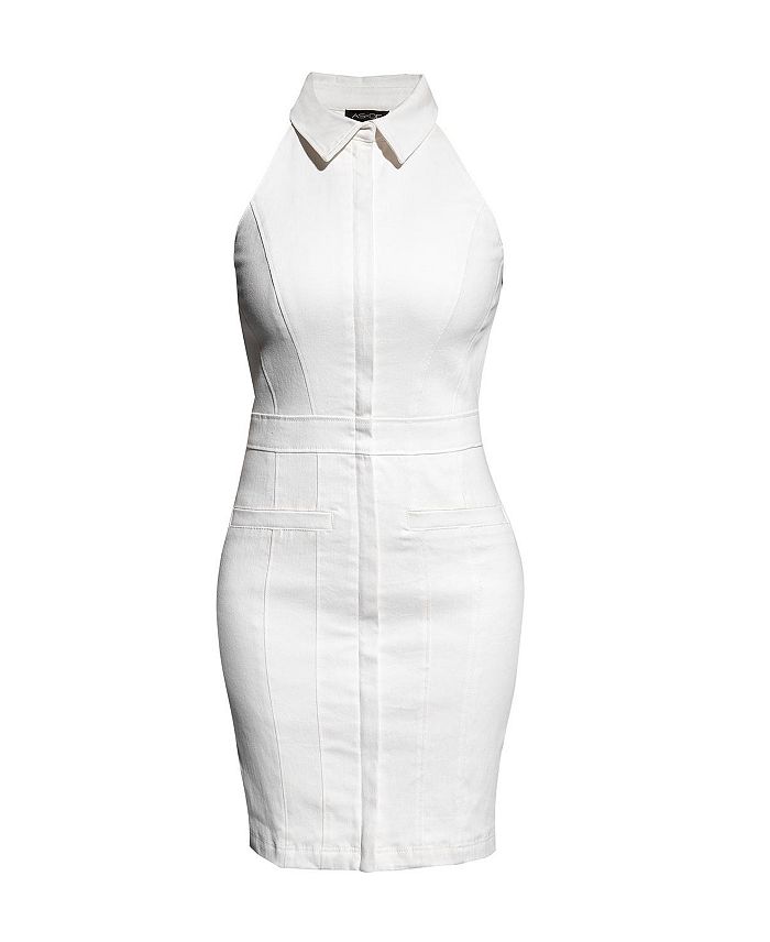 Наше платье Alexandria сшито из очень свежего белого эластичного денима. Двойная подкладка для структуры и поддержки, вы сразу почувствуете себя собранным. Наша двухсторонняя молния добавляет элемент веселья, а воротник с лацканами добавляет элемент бизнеса. Благодаря всем тонким линиям принцессы по всему изделию, этот стиль будет сидеть на вашем теле как влитой. Этот стиль приталенный. Пожалуйста, заказывайте свой обычный размер. Если у вас промежуточный размер, мы рекомендуем уменьшить размер для еще более облегающего образа или увеличить для дополнительного комфорта. Наша приверженность устойчивому развитию: мы не используем пластик. Упаковка AS by DF изготовлена из 100% переработанных материалов и на 100% биоразлагаема. Посадка • Соответствует размеру • Приталенная • Планка закрывает открытую двухстороннюю молнию • Скрытая пуговица в верхней части выреза • Углубленный вырез-халтер • Выпуклые косточки по всей длине • Ложные карманы на юбке • Модель на 5-8 году жизни, на ней американский размер S Ткань • Изделие: 98% хлопок, 2% спандекс • Подкладка: 98% хлопок, 2% спандекс Уход • Только химчистка