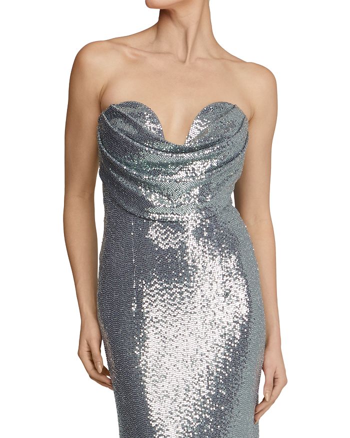 Жюльетта Диско Джерси Платье HALSTON, серебряный