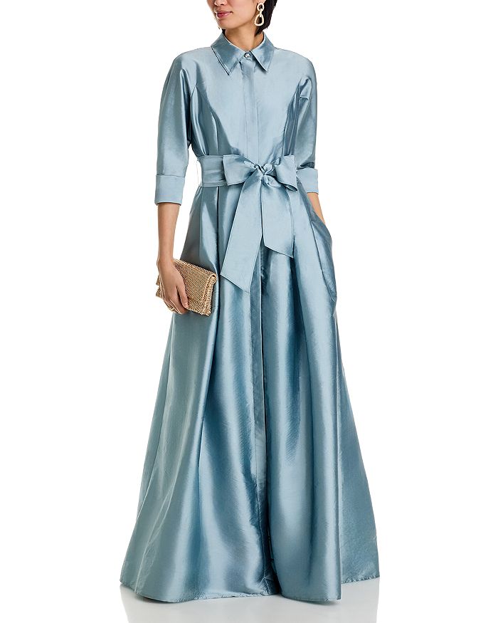 Тафтяное платье с рубашечным лифом Teri Jon by Rickie Freeman, синий