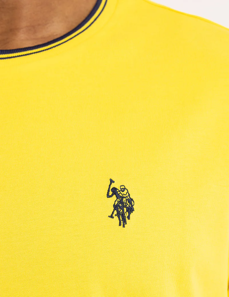 Футболка с контрастной окантовкой ворота от U.S. Polo Assn. сочетает в себе мягкость повседневного хлопка и элегантные детали. Изготовленная из дышащего хлопкового джерси, она имеет круглый вырез с тонкой контрастной окантовкой, короткие рукава и свободный крой, идеальный для ежедневной носки. Небольшой нашитый логотип U.S. Polo Assn. на левой стороне груди добавляет завершающий штрих.