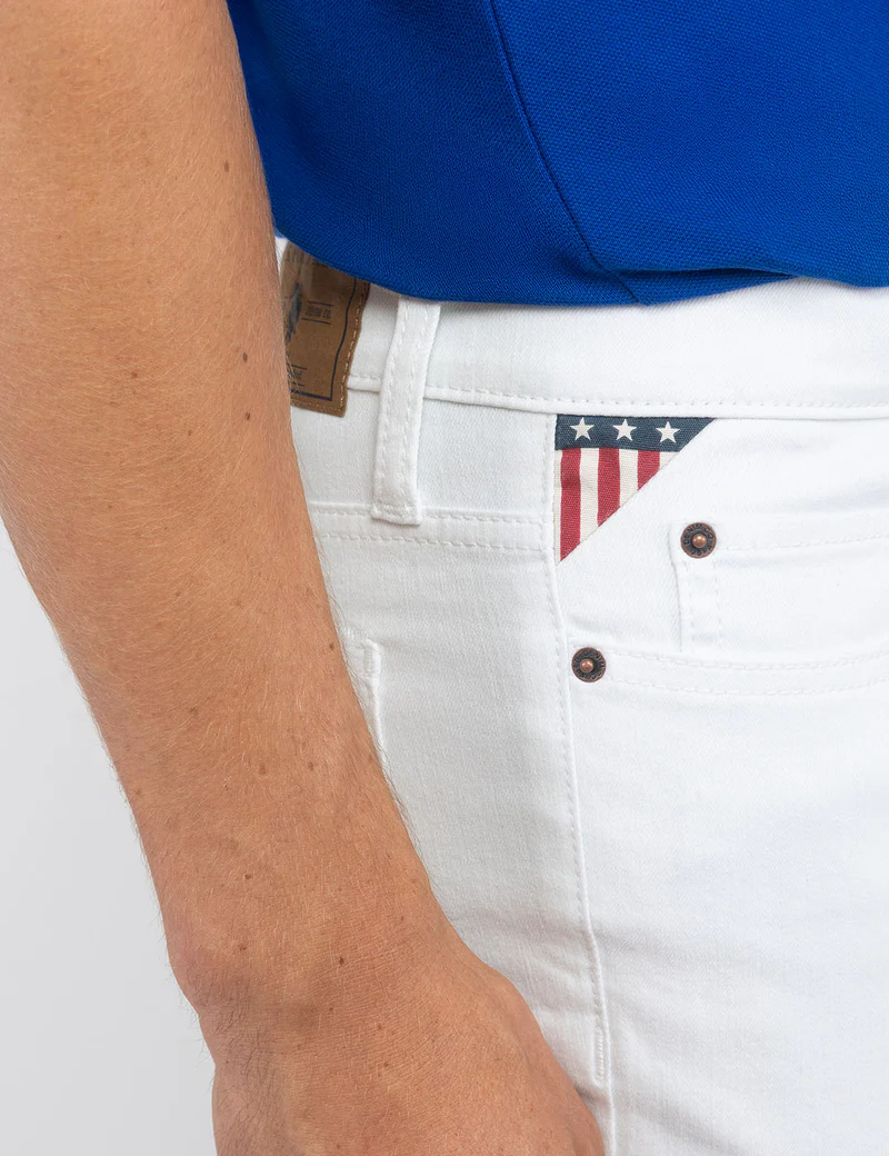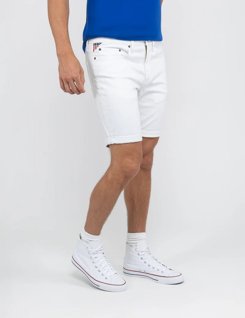 Узкие прямые джинсовые шорты с пятью карманами и манжетами.