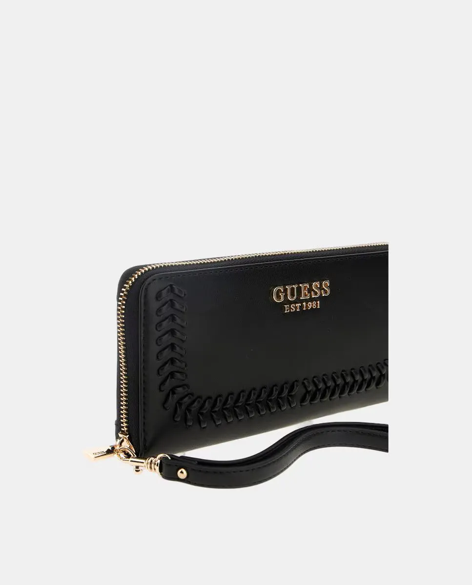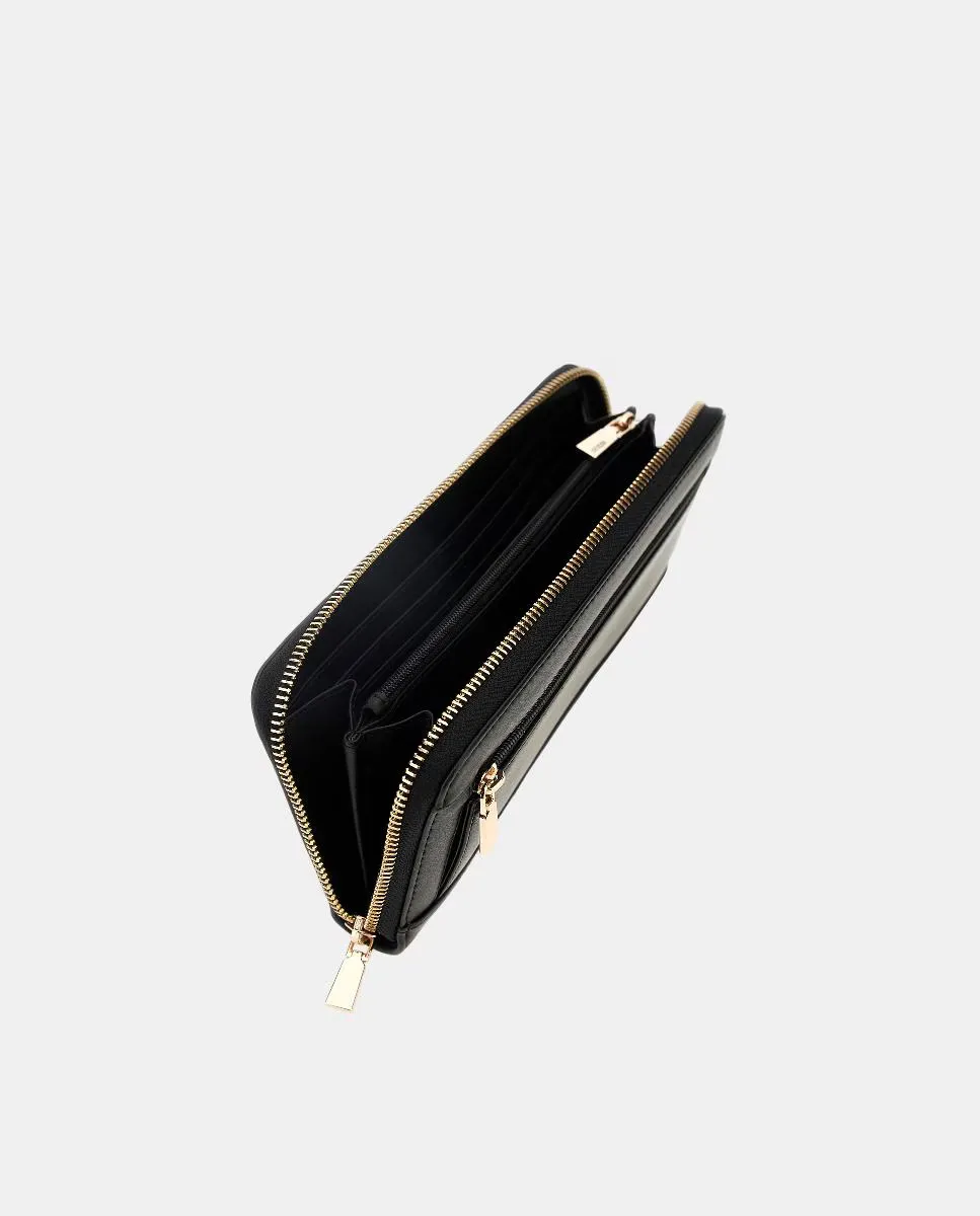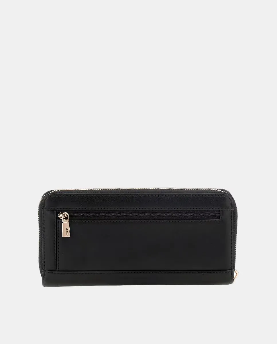 Модель кошелька Tatum с застежкой-молнией и металлическим фронтальным элементом золотистого цвета Guess 1981, отделения для карточек, внутреннее отделение для монет и задний внешний карман на молнии.