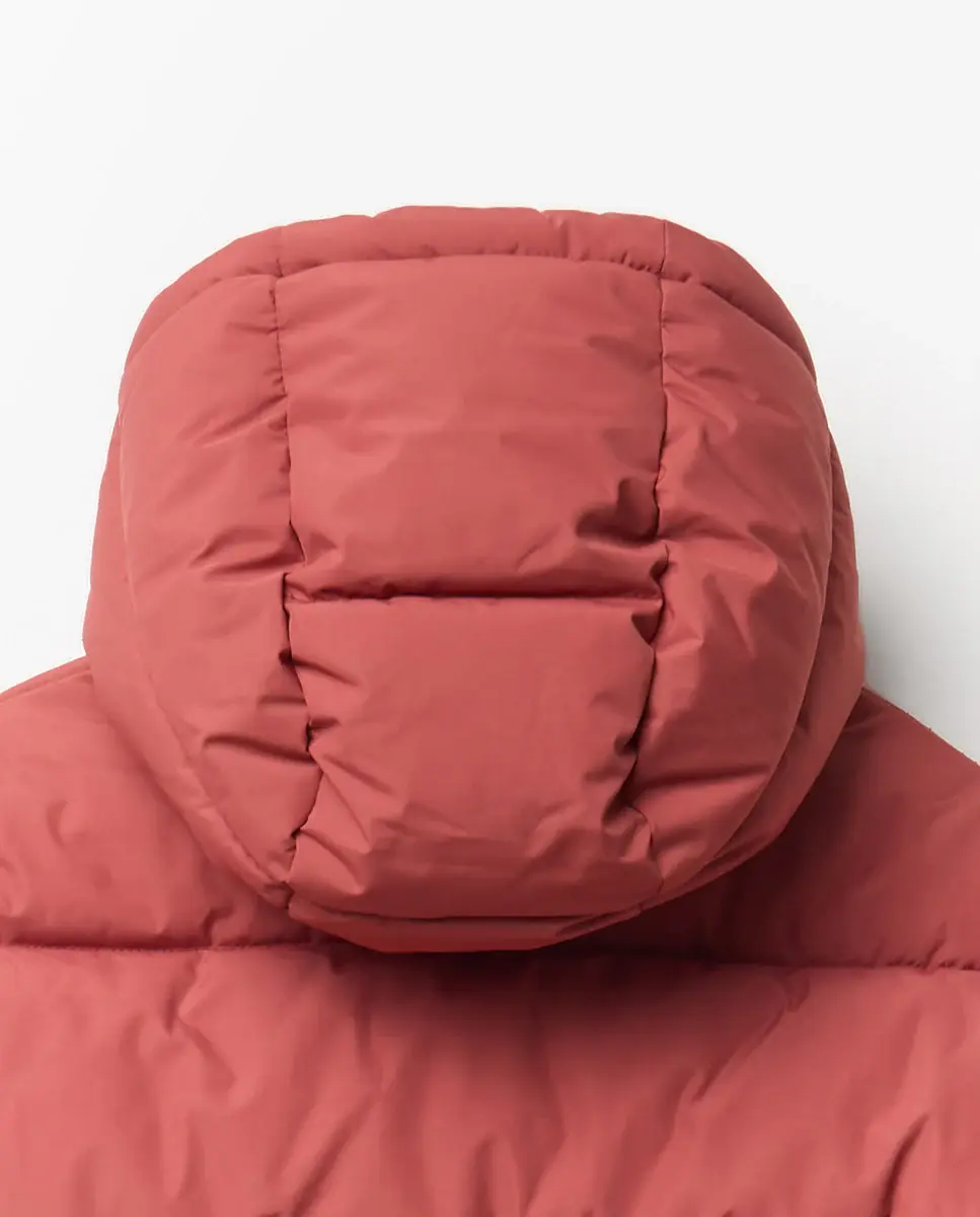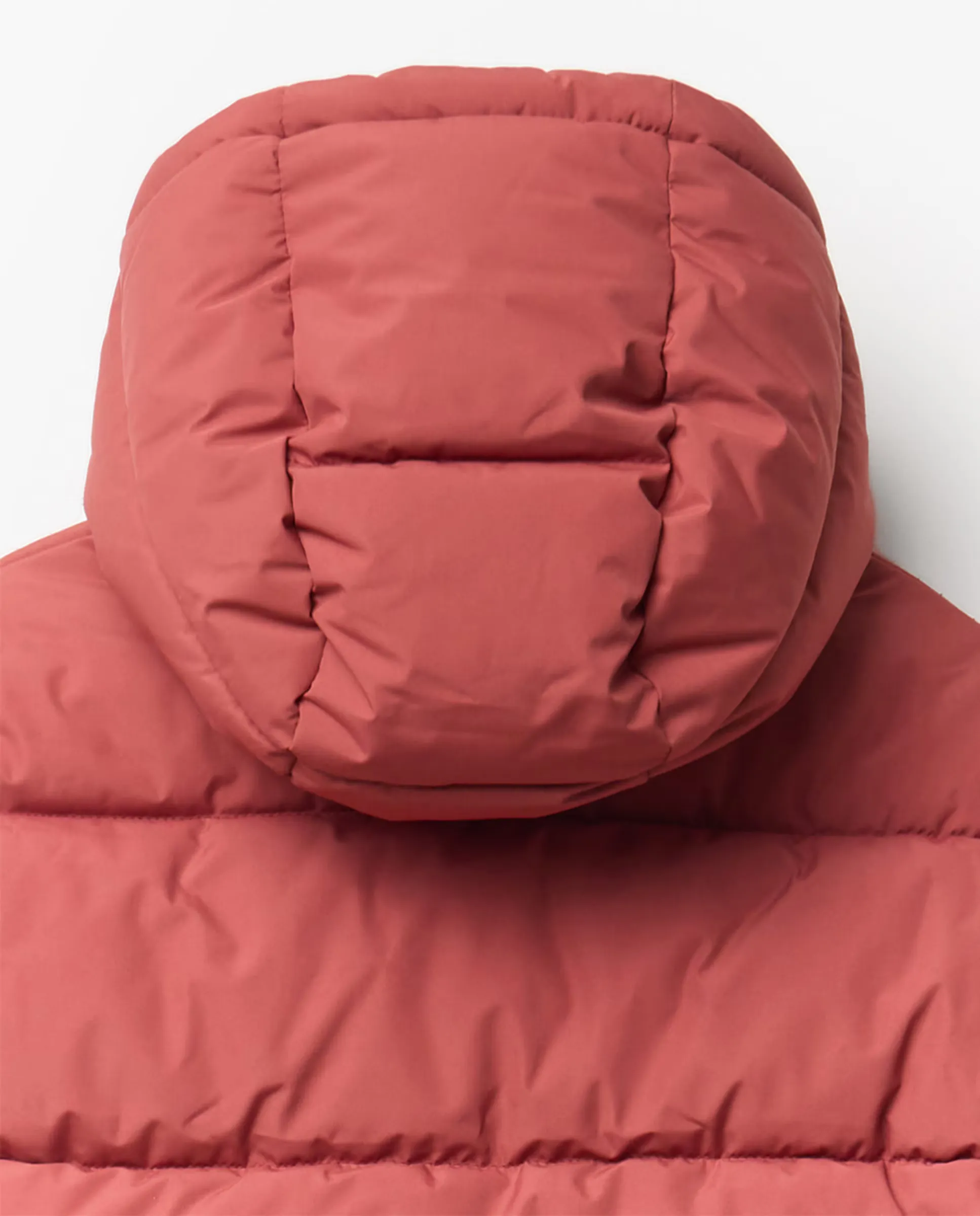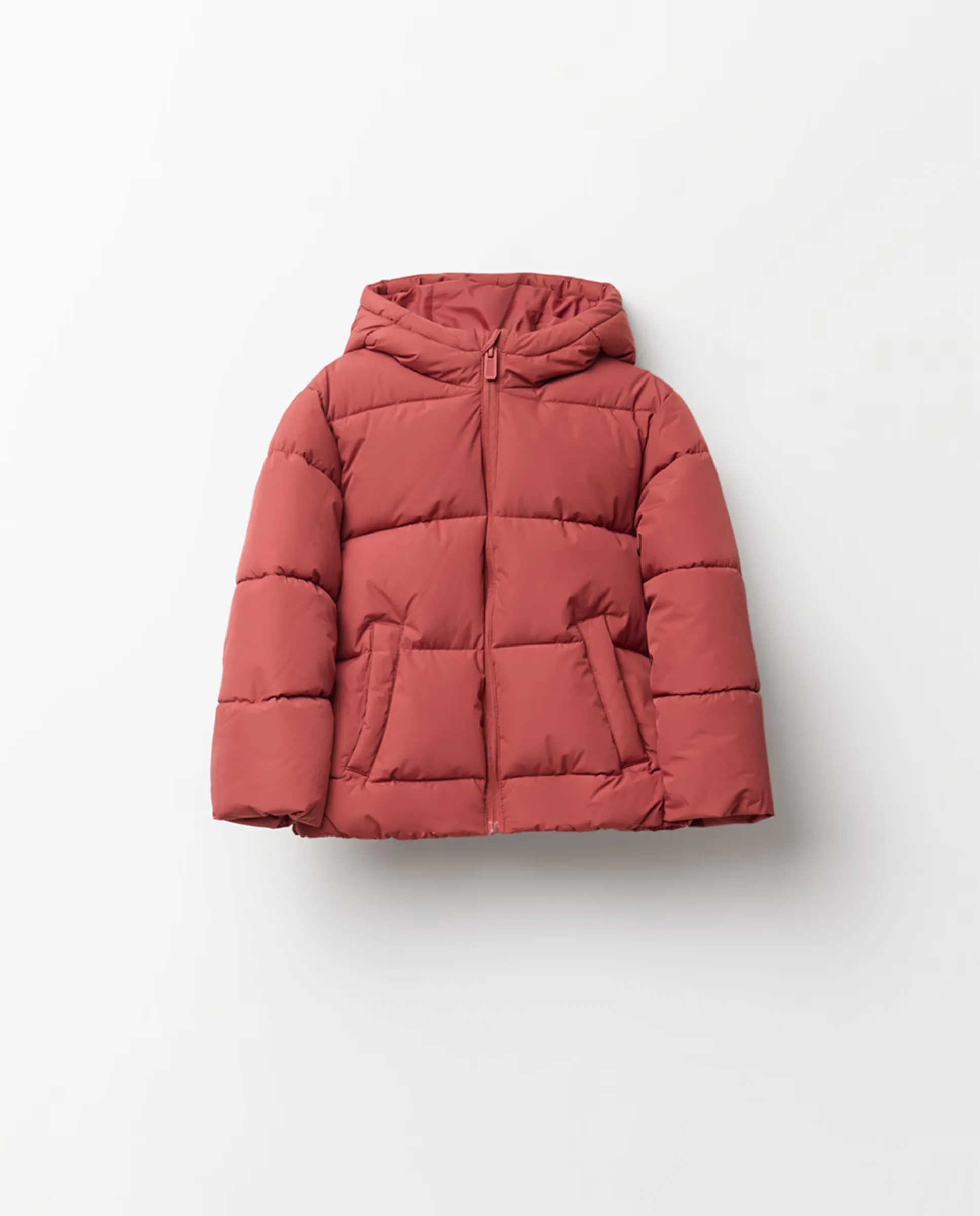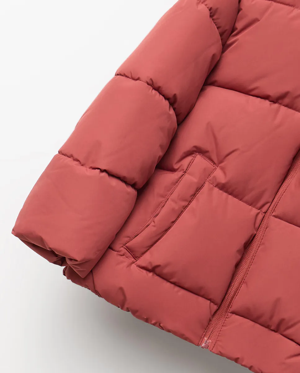 Пуховик с капюшоном и карманами. Застежка на молнии.