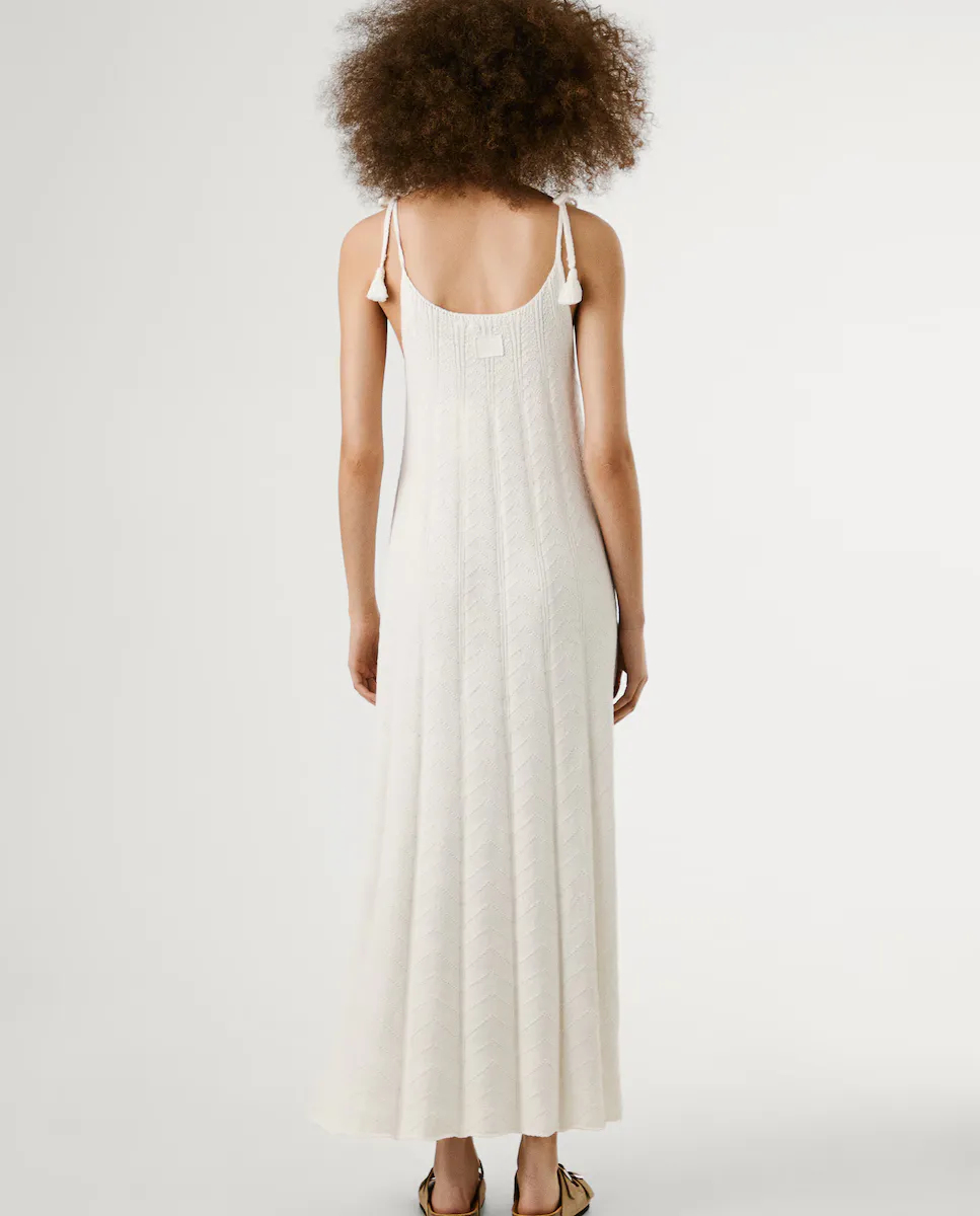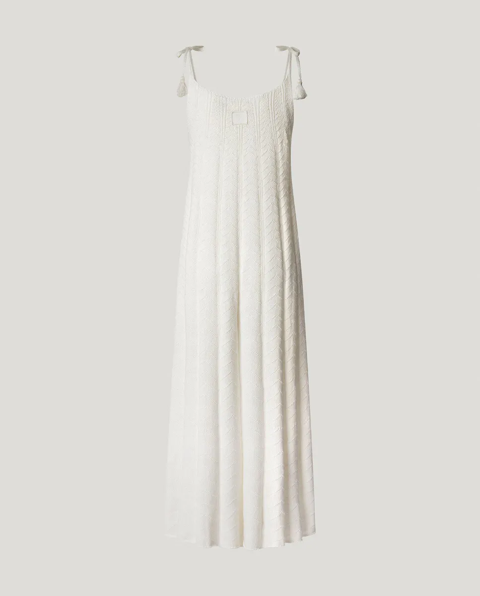 Длинное платье из текстурированного материала с регулируемыми бретелями, детали с кисточками на концах бретелей, волнистый подол и нашивка с логотипом PEPEJEANS на спине. Изготовлено на 100% из устойчивого хлопка.