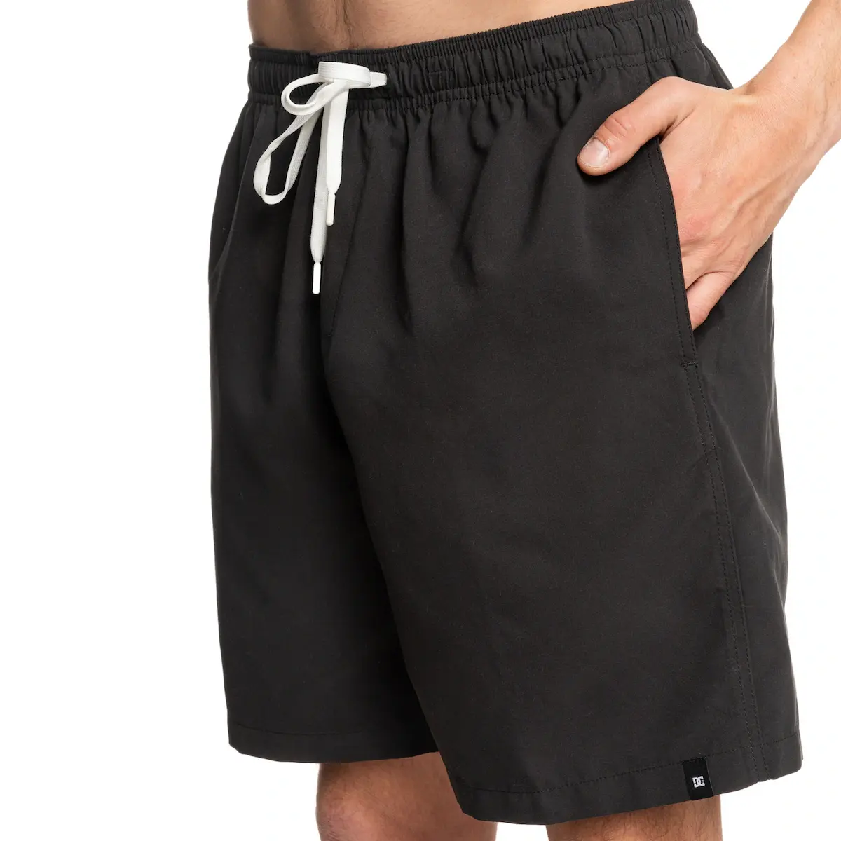 Короткие с эластичным поясом для мужчин. Характеристики включают: Коллекция: коллекция Lineguide, Ткань: Легкая 100% переработанная полиэстровая ткань (125 г/м2), Крой: Свободный крой, Пояс: полностью эластичный и регулируемый, Ширина: обычная длина, Нога: широкая нога, Застежка: Застежка со шнурком, Ширина ног: Ширина ног 66 см, Длина шага: 8 дюймов, Длина: Средняя длина 18 дюймов, Карманы: боковые карманы и Другая характеристика: бедра и бедра с свободным кроем.