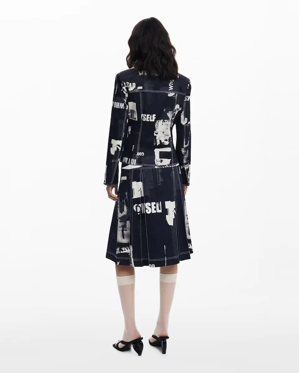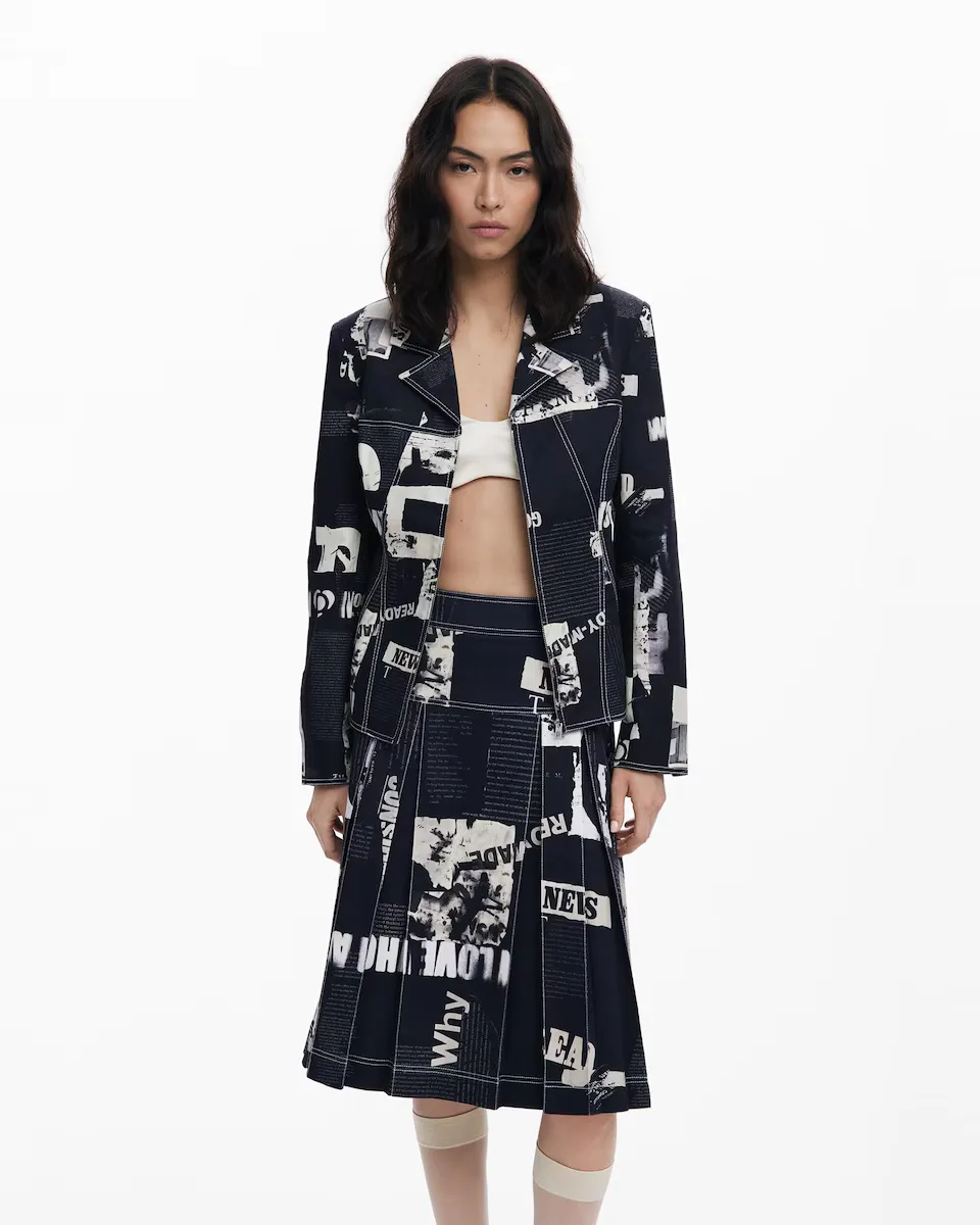 Миди юбка до колена, с складками и застежкой на молнии с принтом газет. Принт Arty. Крой: обычный. Длина: миди. Застежка: на молнии. Покупая хлопковые изделия от Desigual, вы поддерживаете наши инвестиции в Better Cotton. Этот продукт получен с использованием системы массового баланса и может не содержать Better Cotton. bettercotton.org/massbalance..