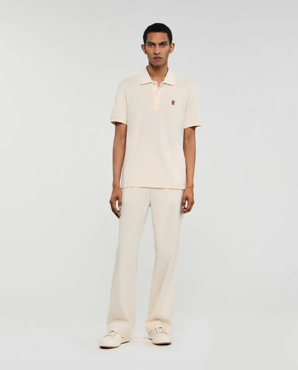 Поло из хлопкового пике с короткими рукавами, поло и украшенное кожаным патчем 4S на груди. Хлопковое поло Sandro Homme. Поло с пуговицами. Короткие рукава. Кожаный патч 4S.