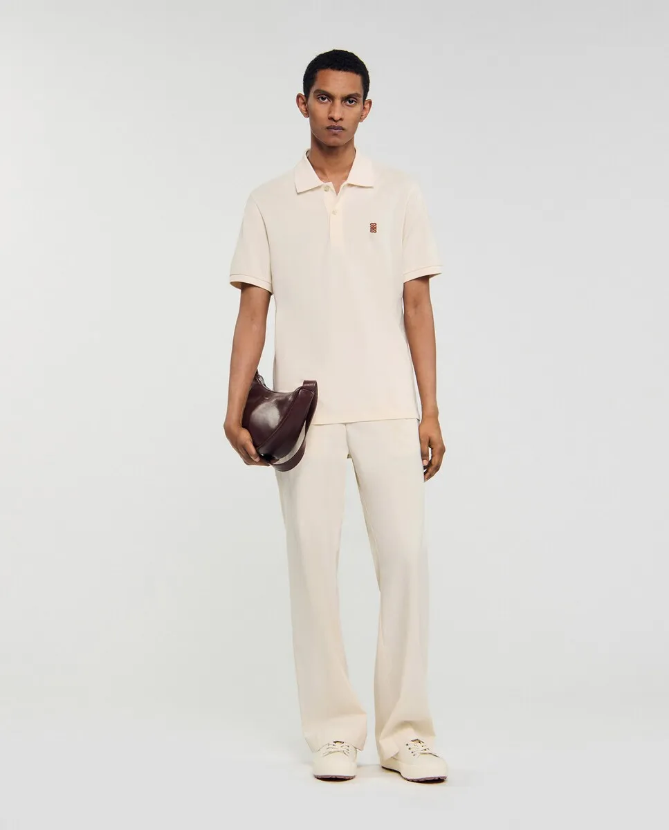 Мужская поло с кожаным логотипом Sandro, бежевый