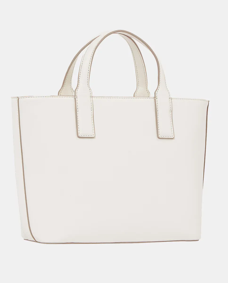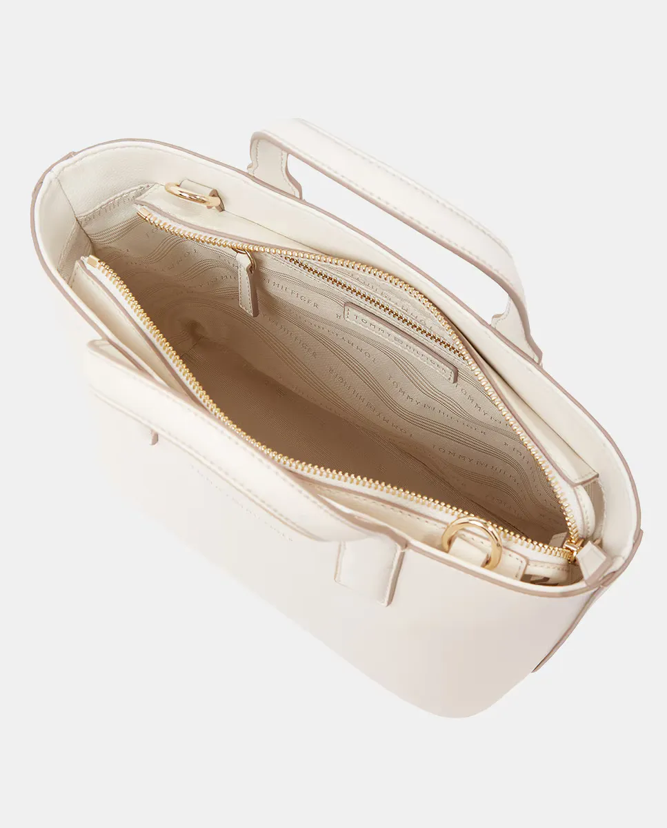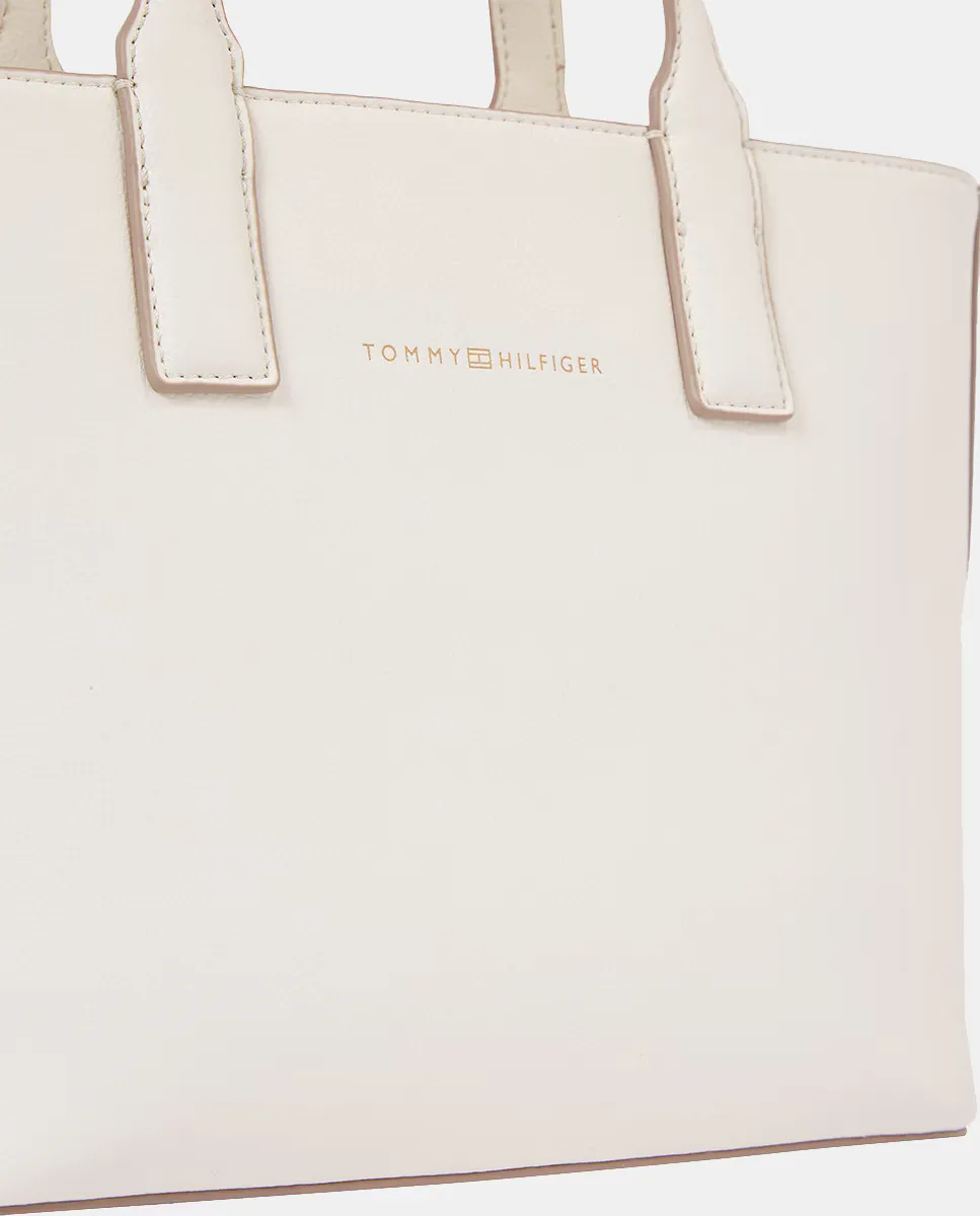 Мини-сумка-тот, выполненная из экокожи белого цвета. Дизайн с регулируемым ремешком и застежкой на молнии. Деталь с логотипом Tommy Hilfiger на передней части.