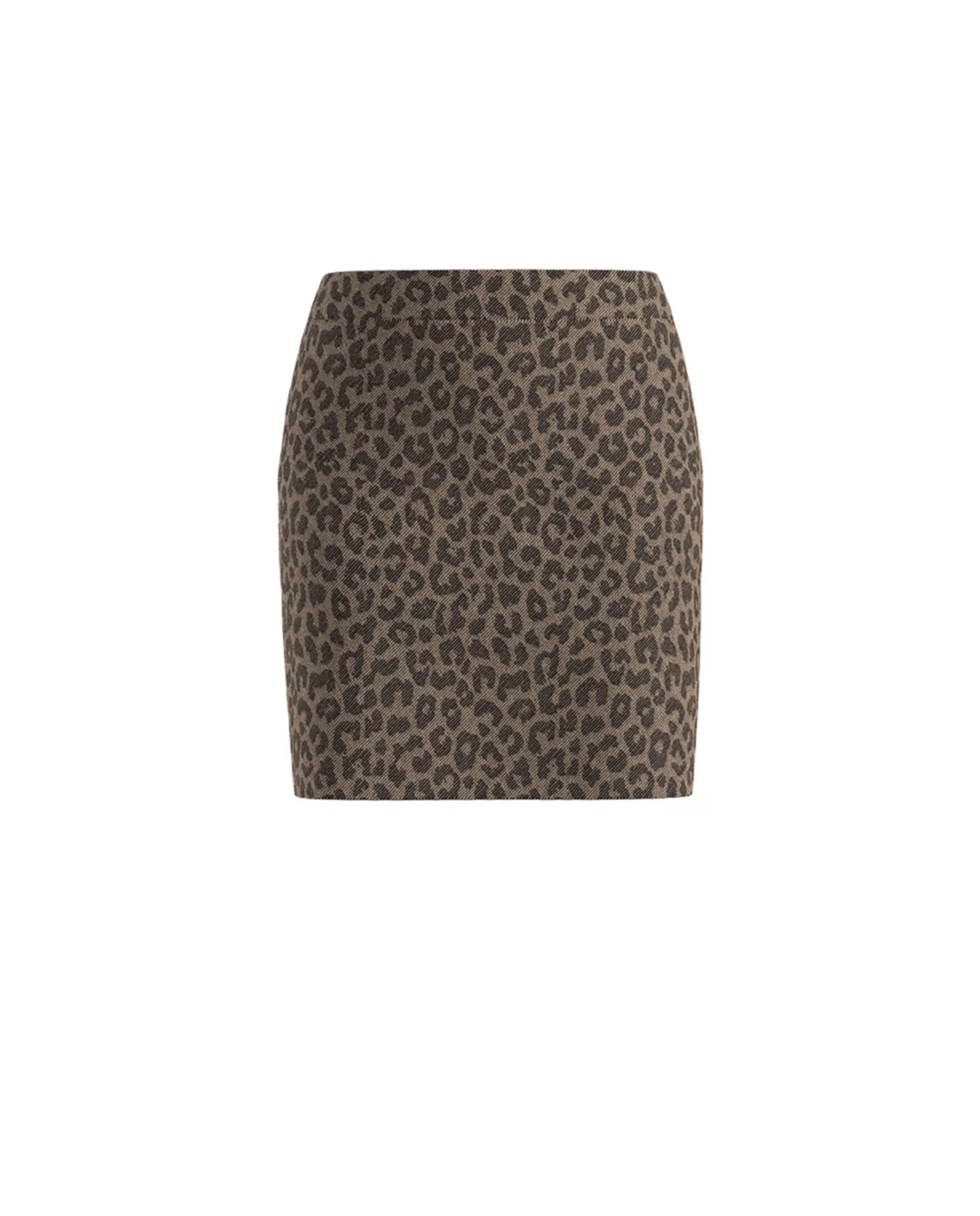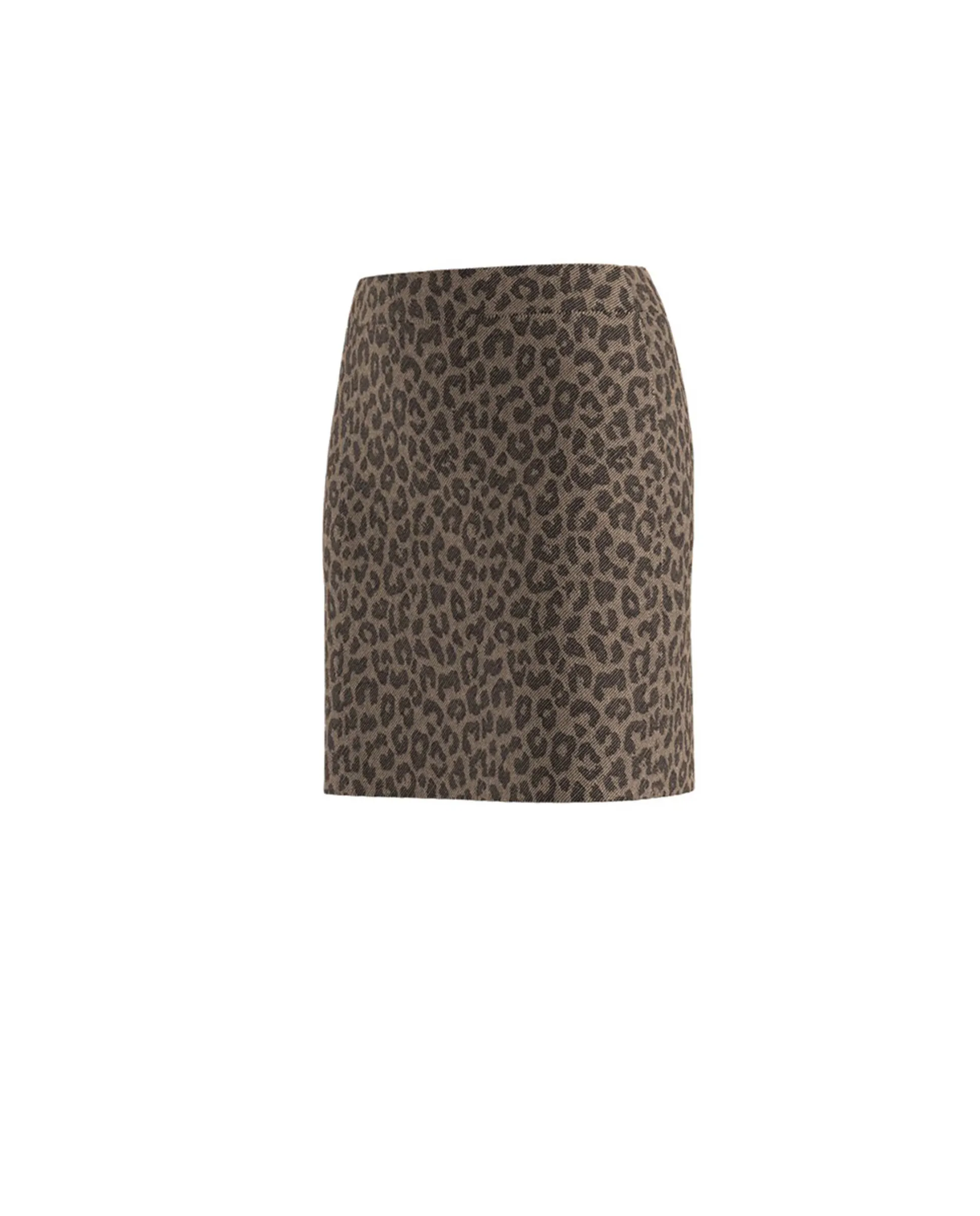 Короткая юбка из жаккарда с отделкой из замши, подкладка с принтом под животное
