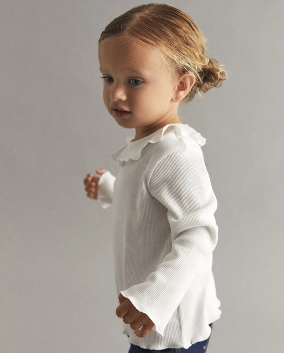 Футболка с воланом на воротнике. 100% хлопок