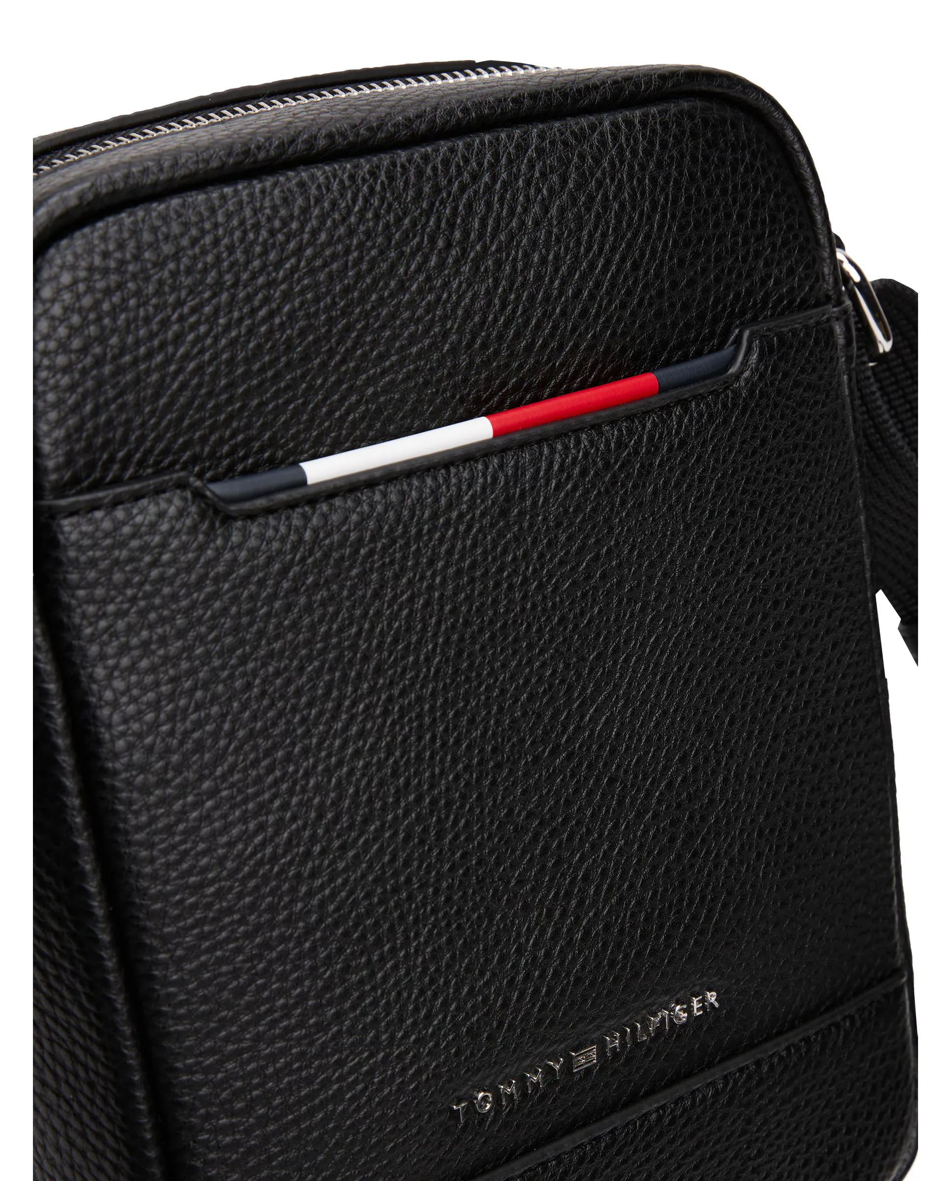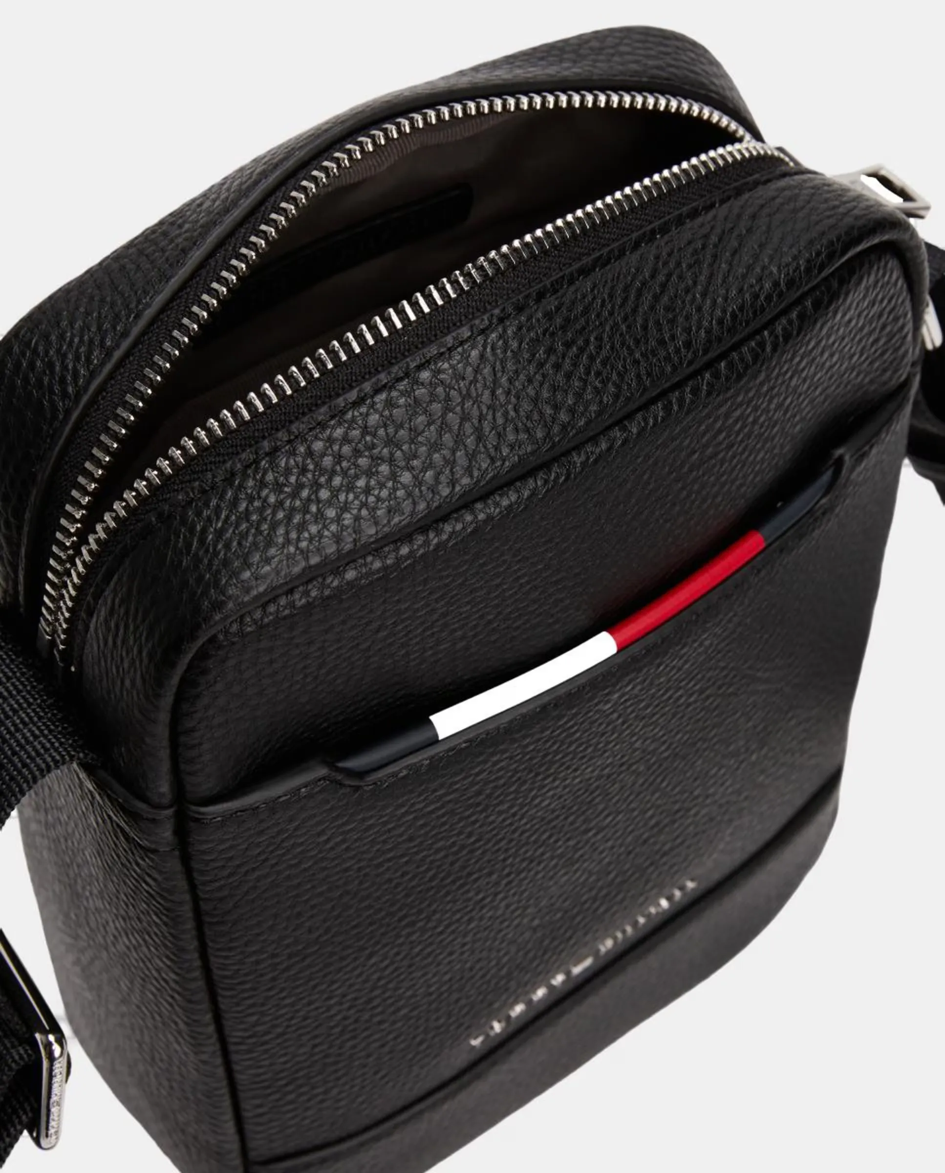 Компактная сумка-репортер для мужчин, изготовленная из высококачественного синтетического материала черного цвета. Удобный и современный дизайн с характерными деталями бренда. Имеет основное отделение на молнии и фронтальный карман для легкого доступа. Регулируемый ремень для удобной носки на плече или через плечо. Логотип Tommy Hilfiger на передней части.