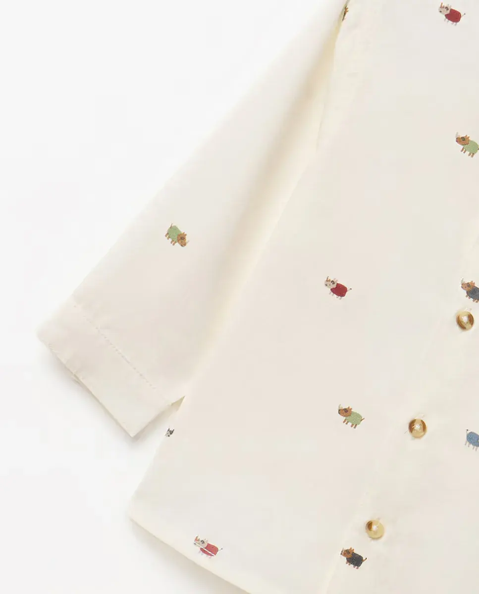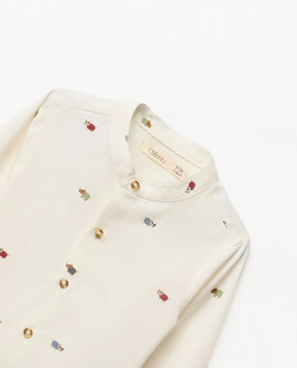 Рубашка с принтом, воротником мао и длинными рукавами. Застежка на кнопках. 100% хлопок.