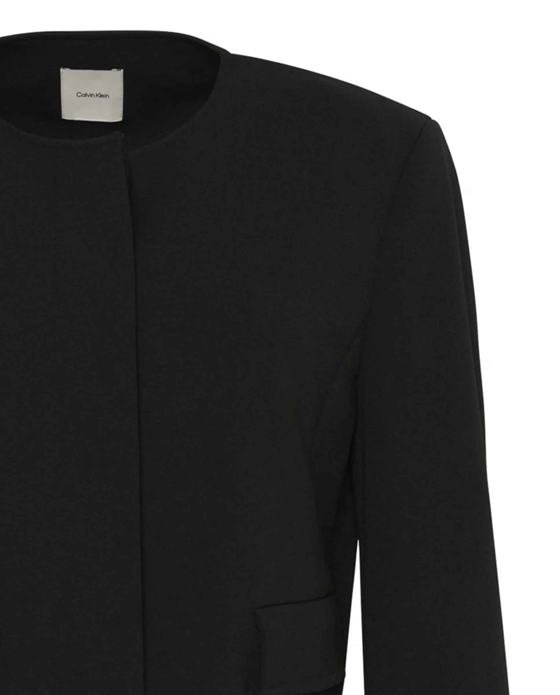 Короткая куртка из крепа Calvin Klein, изготовленная из полиэстера и эластана, с клапанными карманами и круглым вырезом.