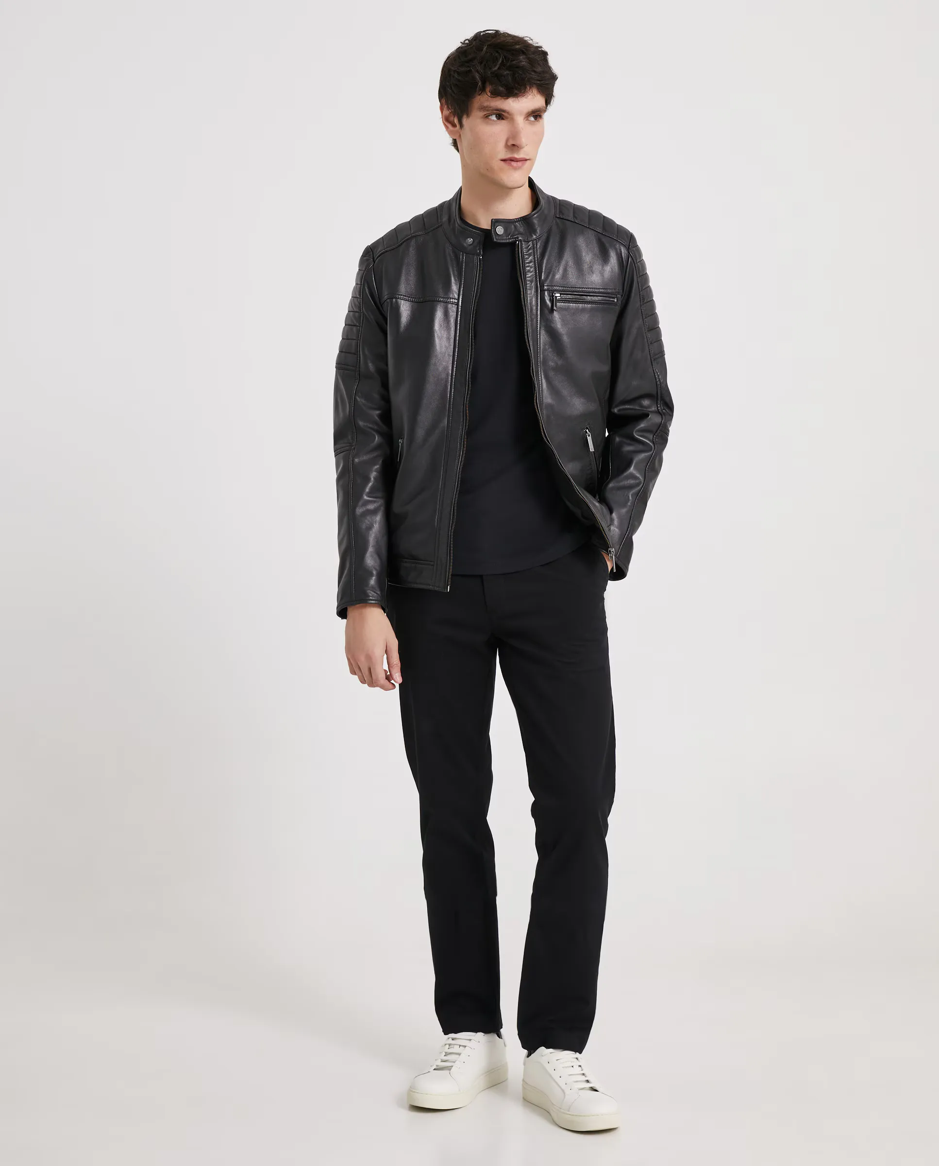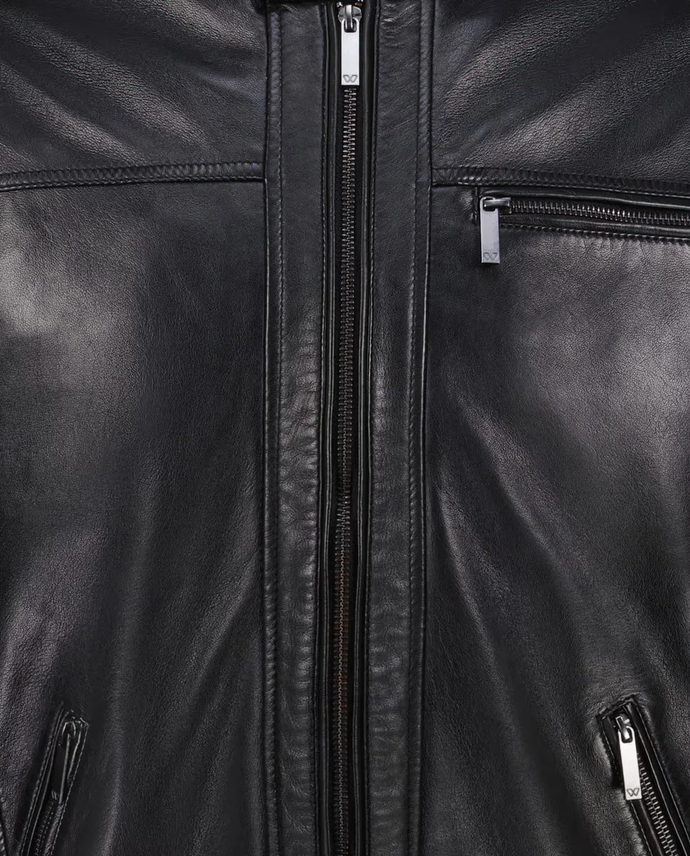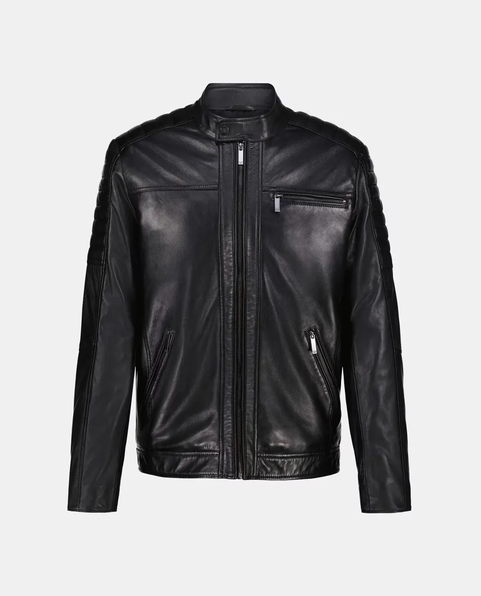 Кожаная байкерская куртка. Имеет три наружных кармана и два внутренних.