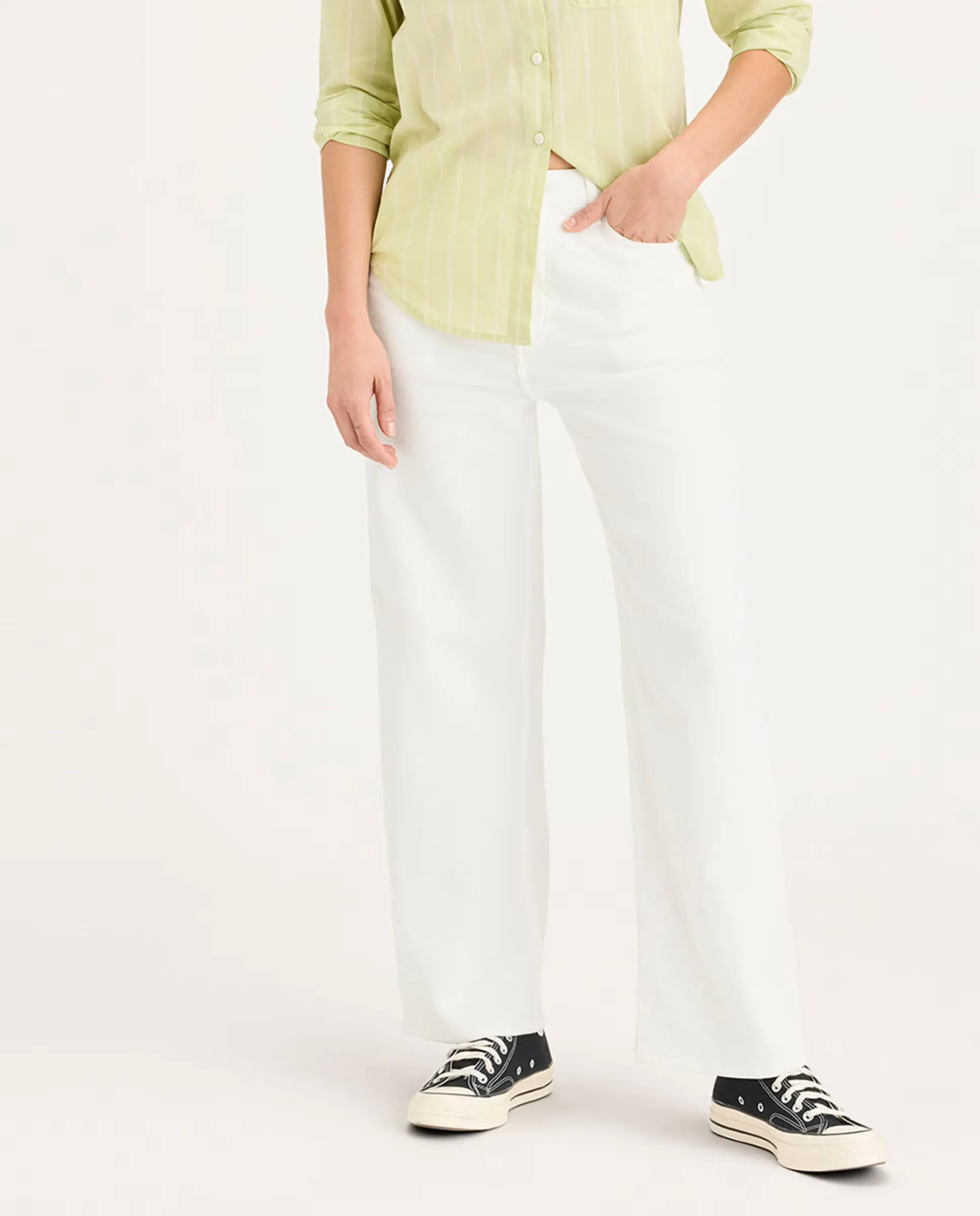 Прямые джинсы с высокой талией для женщин. 99% хлопок, 1% эластан. Белый цвет.