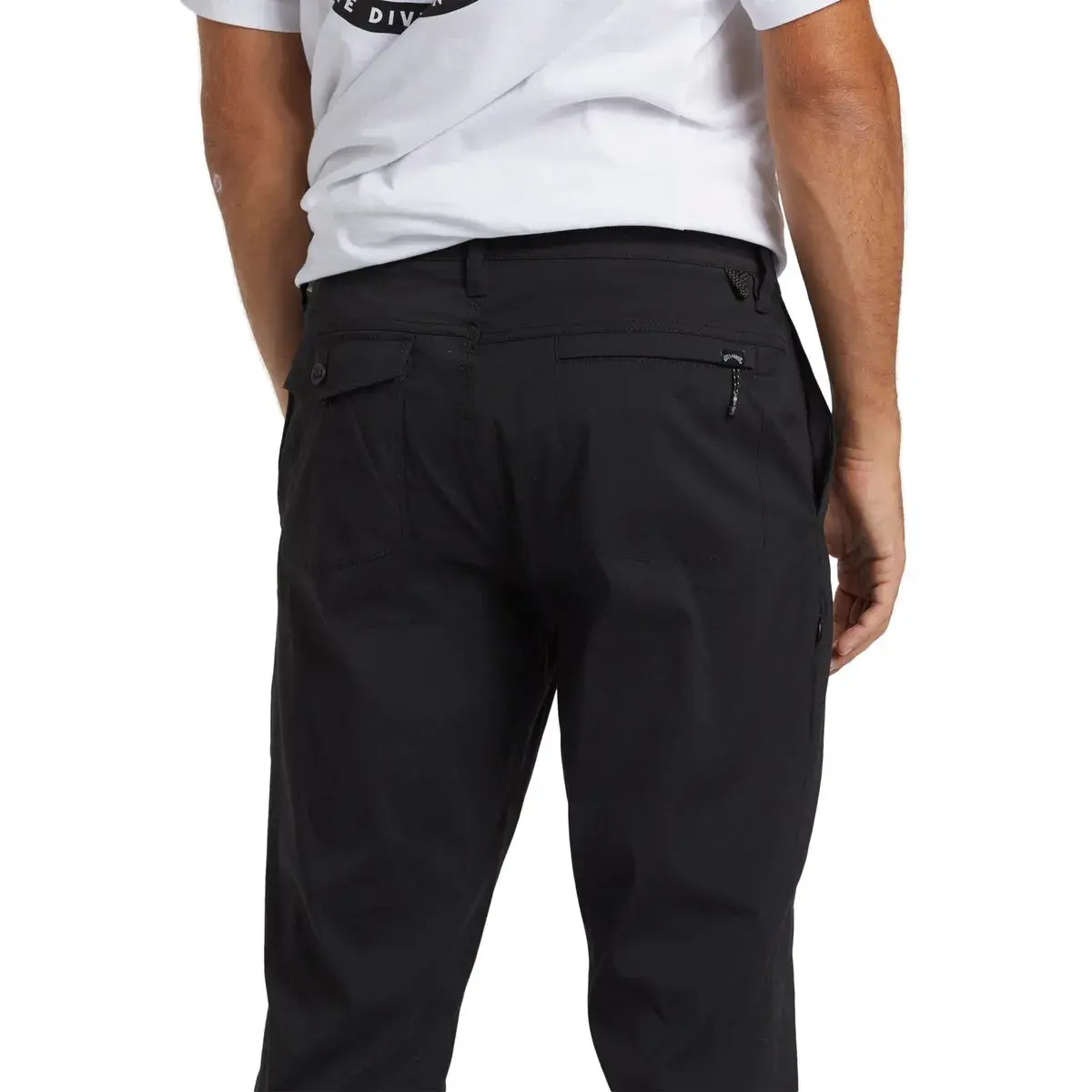 Технические брюки для мужчин. Особенности: Коллекция: Adventure Division, Ткань: жаккард, смесь нейлона, эластана и переработанного хлопка, Эластичная ткань Surftrek, устойчивая к влаге и быстро сохнущая, изготовленная из переработанного полиэстера, Крой: обычный крой, Молния: застежка на молнии, Пояс: внутренний жаккардовый пояс для большей эластичности и комфорта, Застежка: пояс с шнурком на утяжку для завязывания внутри или снаружи, Карманы: боковые карманы, задний карман с клапаном на молнии и скрытый боковой карман на молнии на правой ноге, Другие особенности: вышивка с логотипом и термотрансфер Surf Trek внутри пояса.