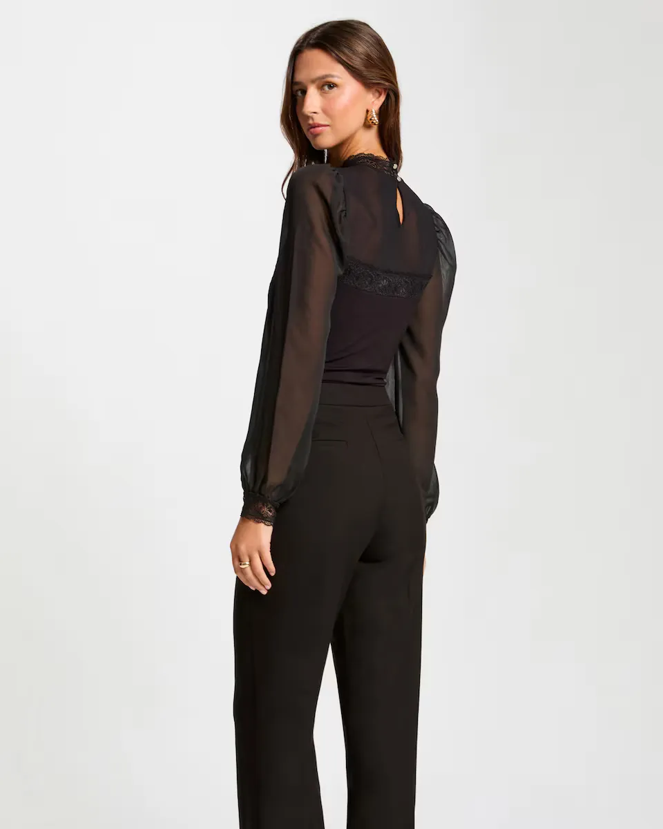 Топ Body de mujer de manga larga con encaje Morgan, черный