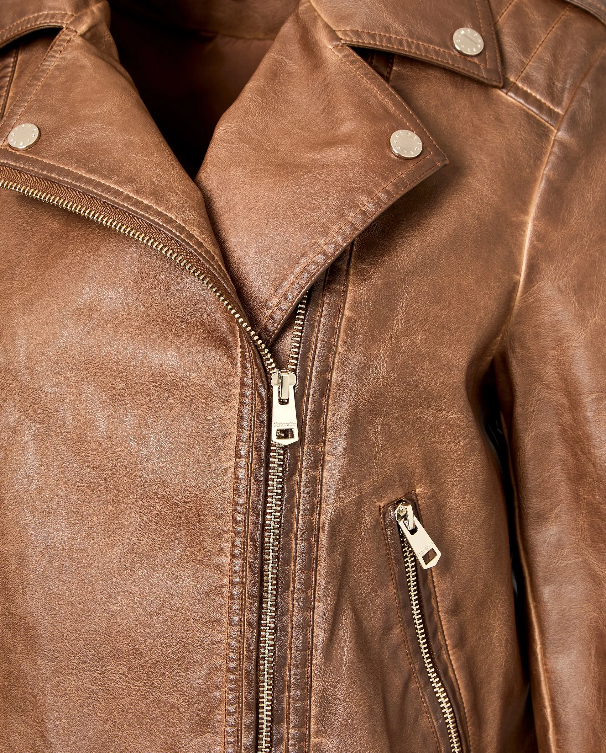 Кожаная байкерская куртка с потертыми лацканами.