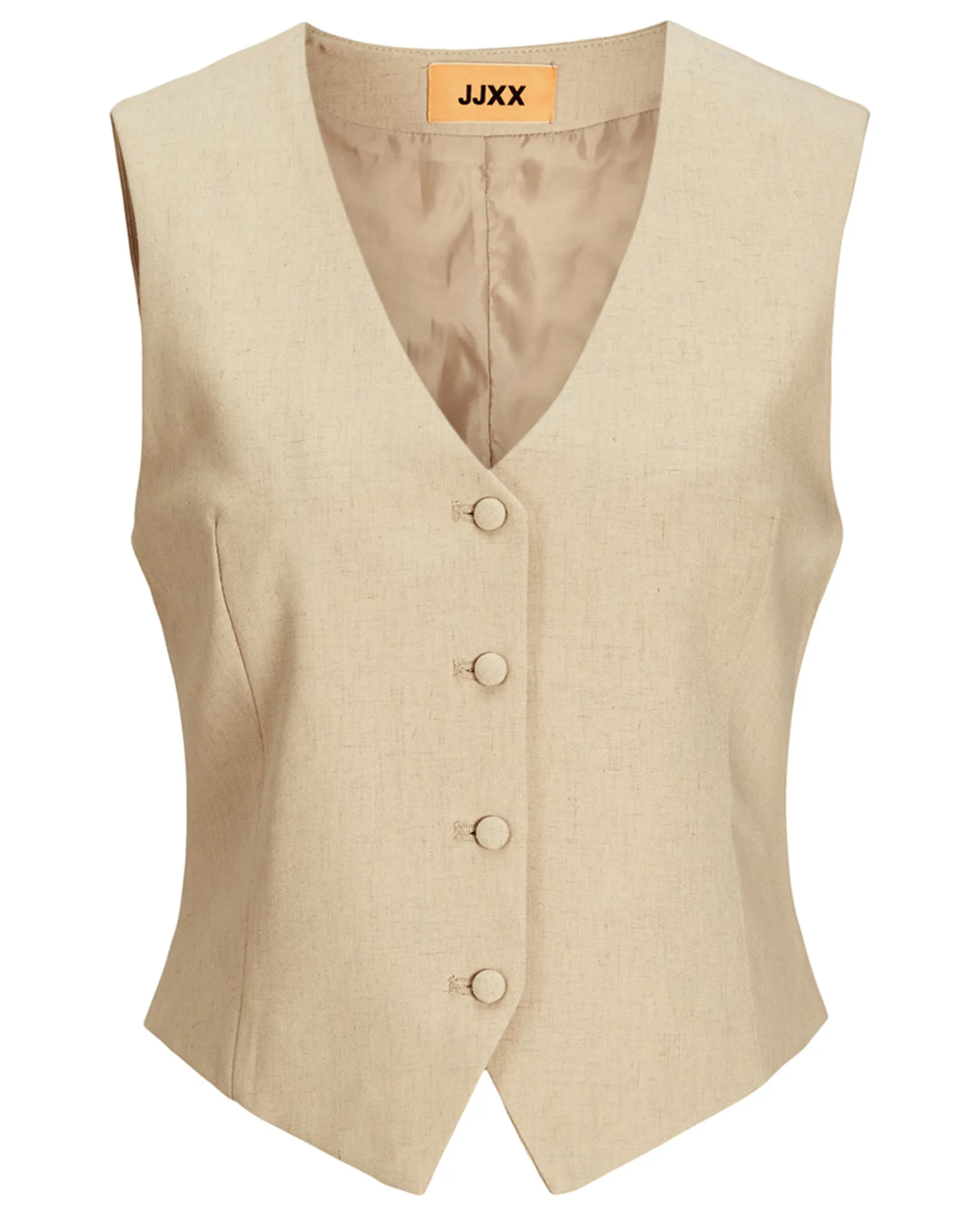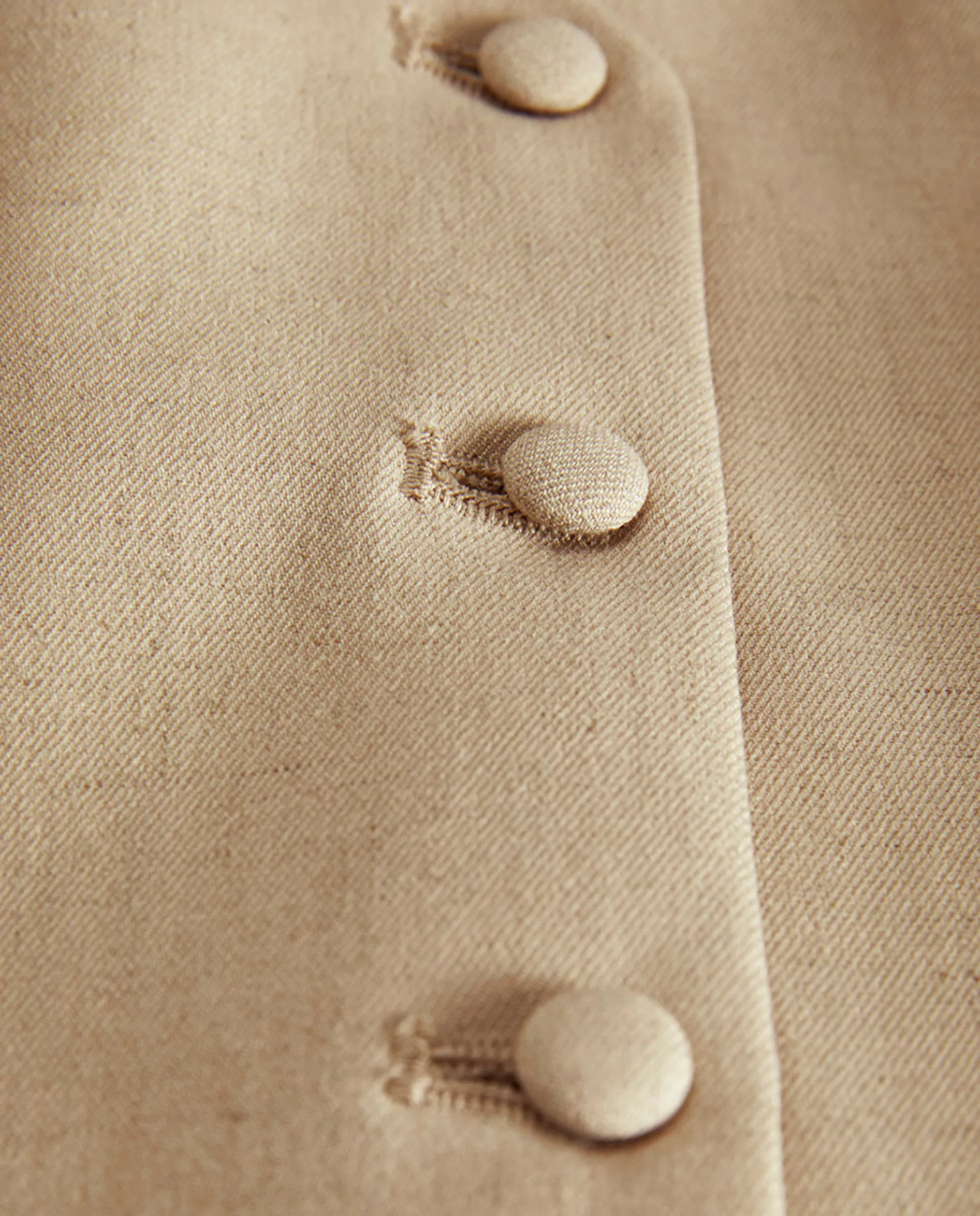 Жилет, сшитый из льна. Дизайн с застежкой на пуговицах и небольшим разрезом сзади.