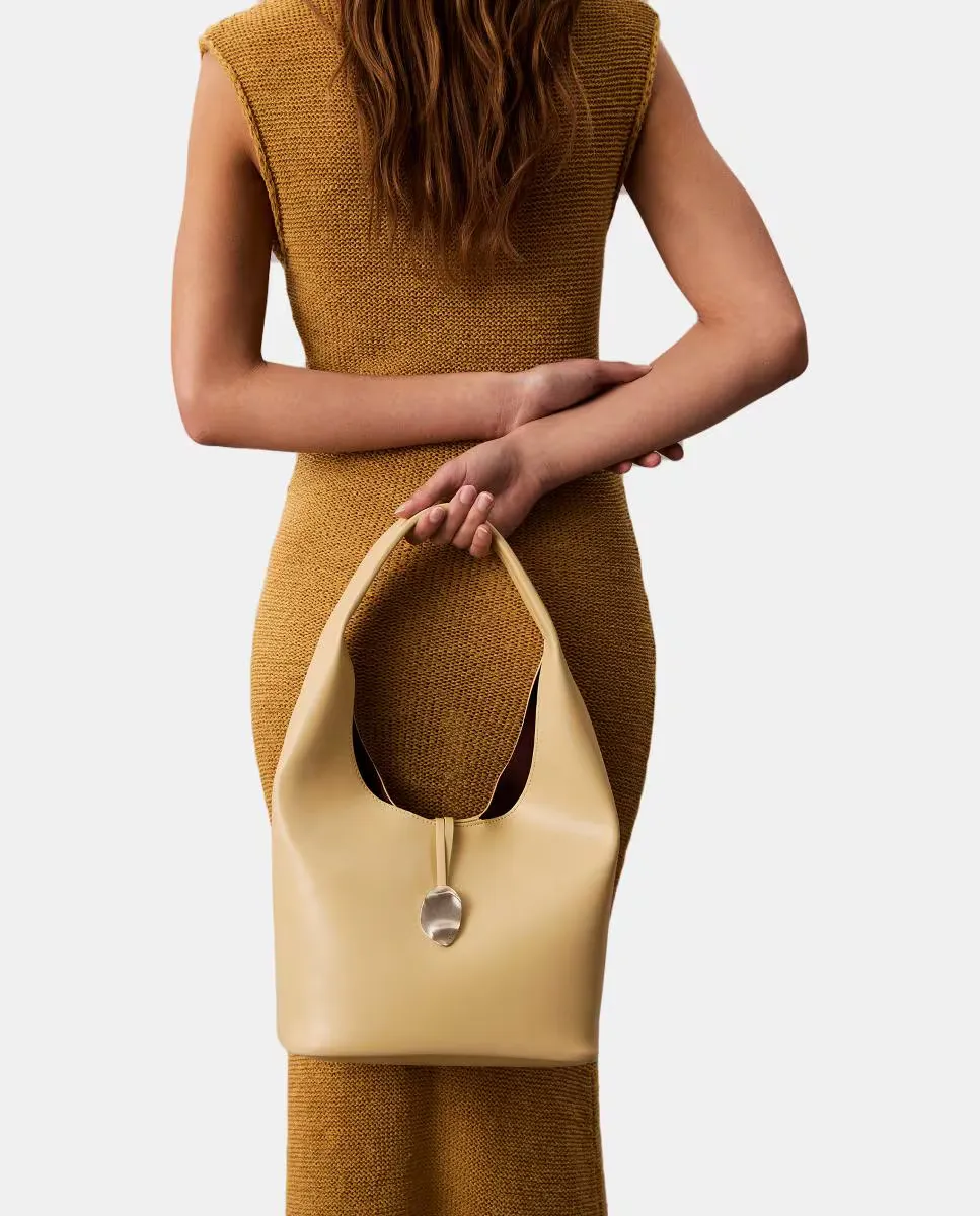 Маленькая сумка на плечо для женщин желтого цвета. Магнитная застежка и металлическая фурнитура.