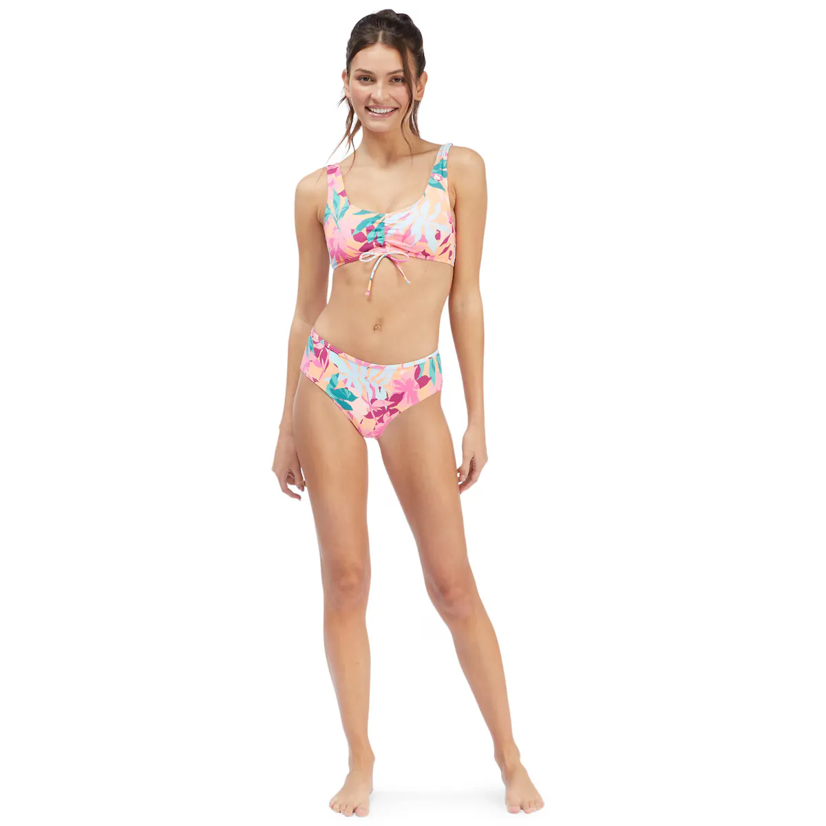 Бикини с гипстерским дизайном для женщин. Характеристики включают: Ткань: переработанная ткань, упругая, мягкая и устойчивая к хлору. Покрытие: гипстерское покрытие. Высота: средняя высота. Резиновый логотип ROXY. Широкий пояс и легкое отверстие для ноги.