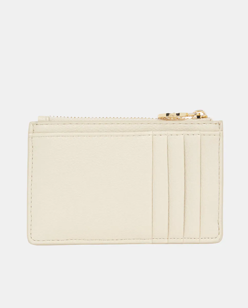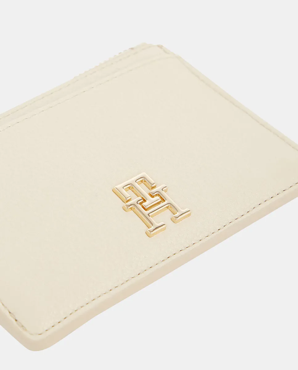 Женский кардхолдер, изготовленный из экокожи бежевого цвета. Дизайн с множеством слотов для карточек и монетницей. Деталь с металлическим логотипом Tommy Hilfiger на фронте.