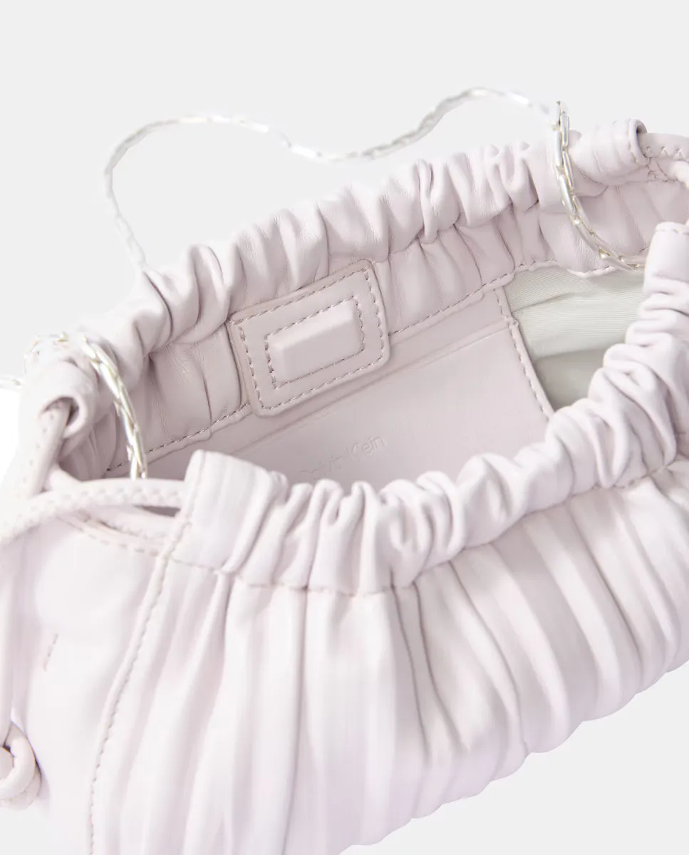 Сумка через плечо Calvin Klein размер мини с трубчатой серебряной цепочкой, мягкой сборкой текстуры и логотипом на передней части