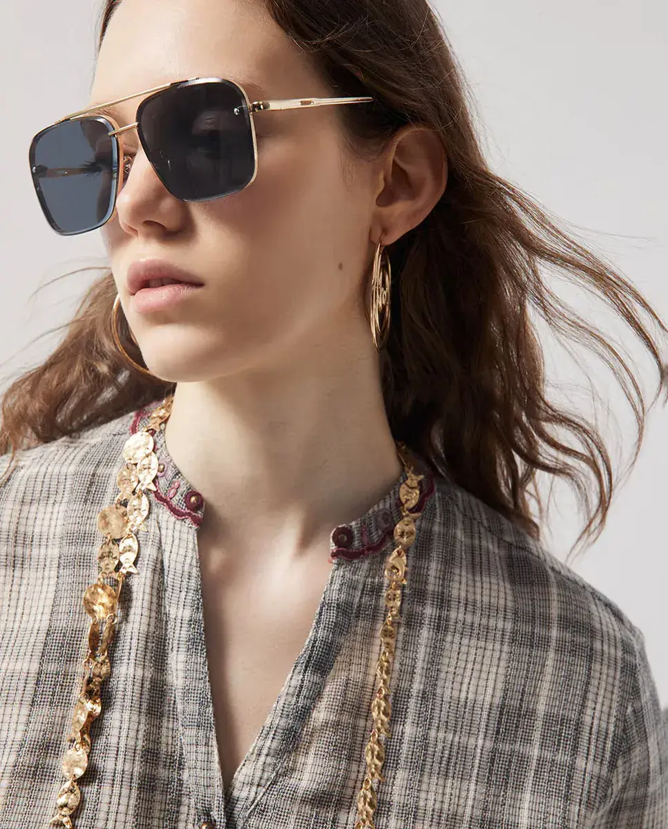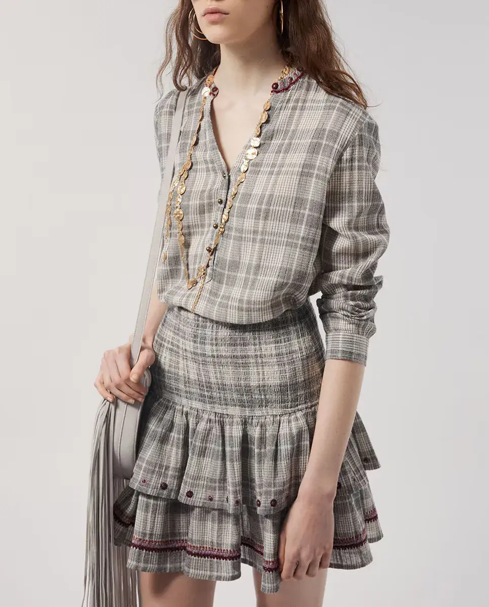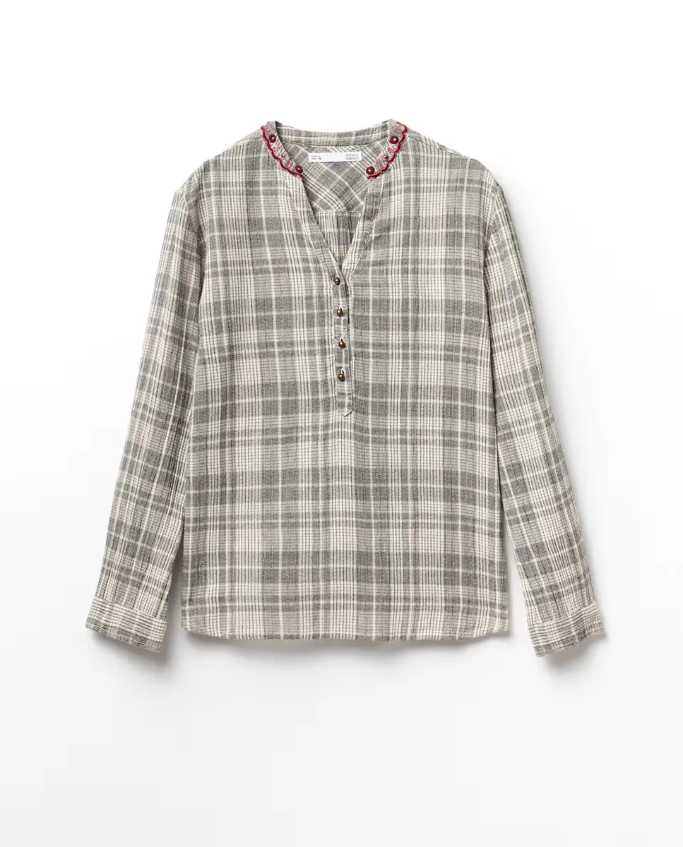 Блуза в клетку Sfera, цвет Piedra